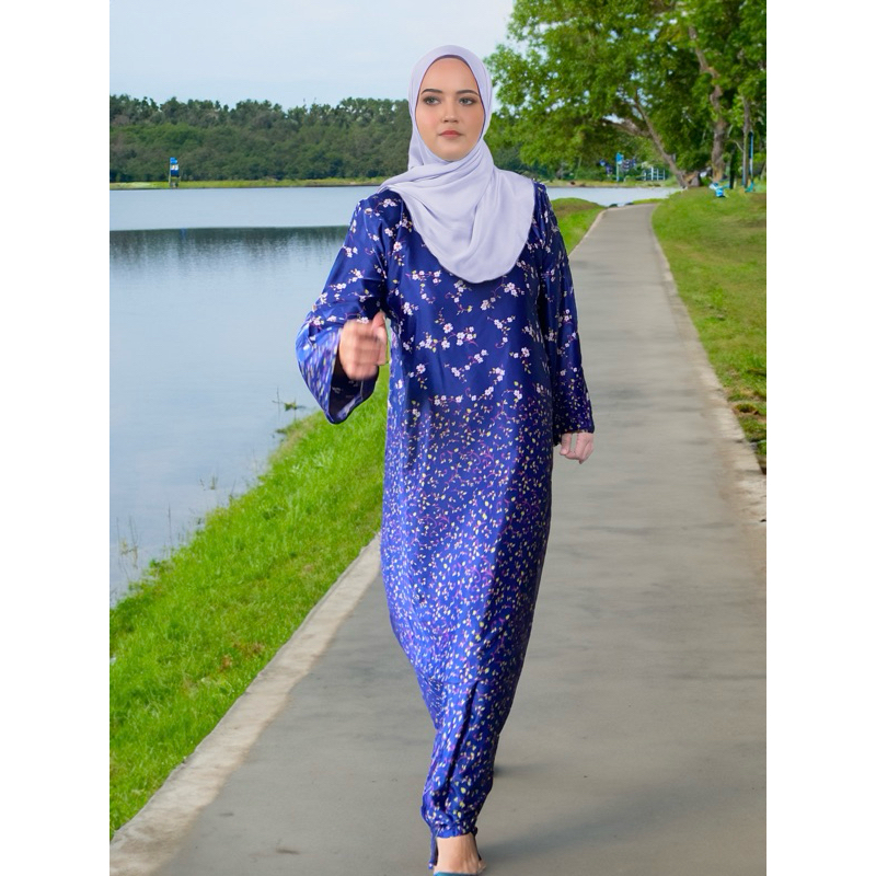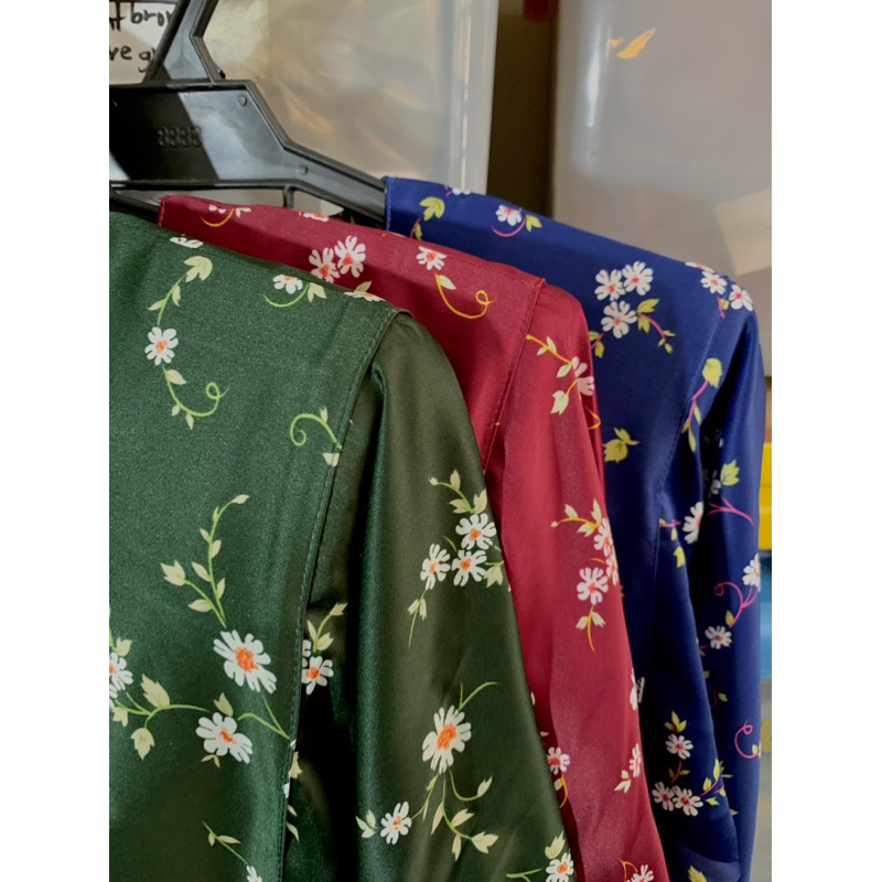 Kurung Pahang Diana Corak berbunga Kain Lipat Batik Longgar Selesa Warna Maroon Biru Coklat Hijau