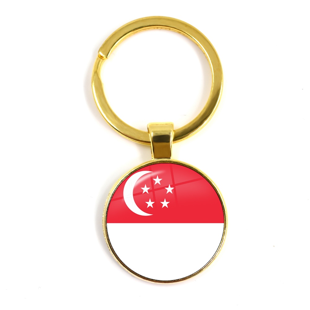 Kuwait,Qatar,North Korea,Bahrain,Oman,Singapore National Flag Keychain 25mm Glass Cabochon Key Rings For Women Men Gift