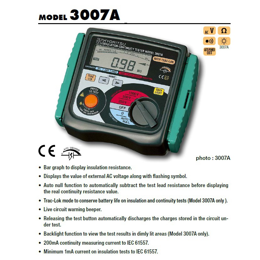 Kyoritsu 3007A Insulation/Continuity Tester (NEW & ORI KYORITSU)