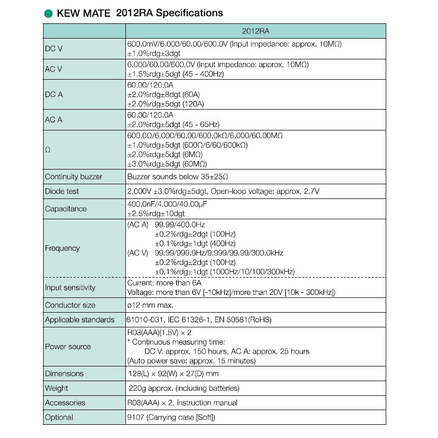 Kyoritsu KEWMATE 2012RA Digital Multimeter with AC/DC Clamp Sensor 120A (NEW & ORI KYORITSU)