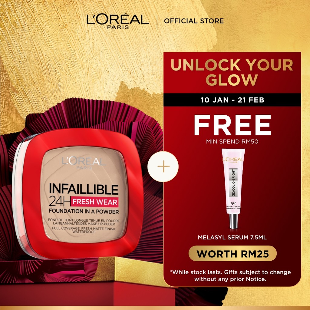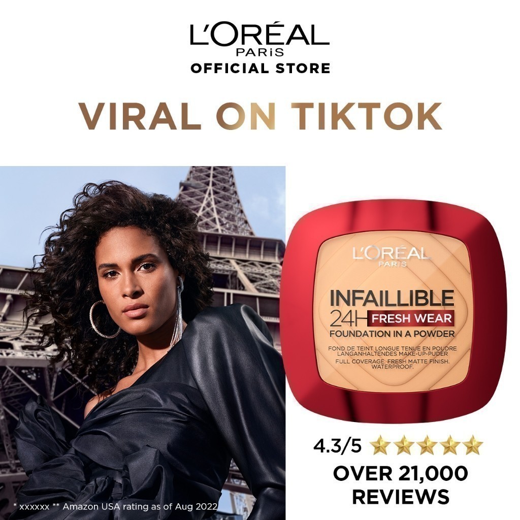 L’Oréal Paris Infaillible Longwear 24H Fresh Wear Foundation In A Powder Oil-Free, Fresh Matte Full Coverage, Waterproof