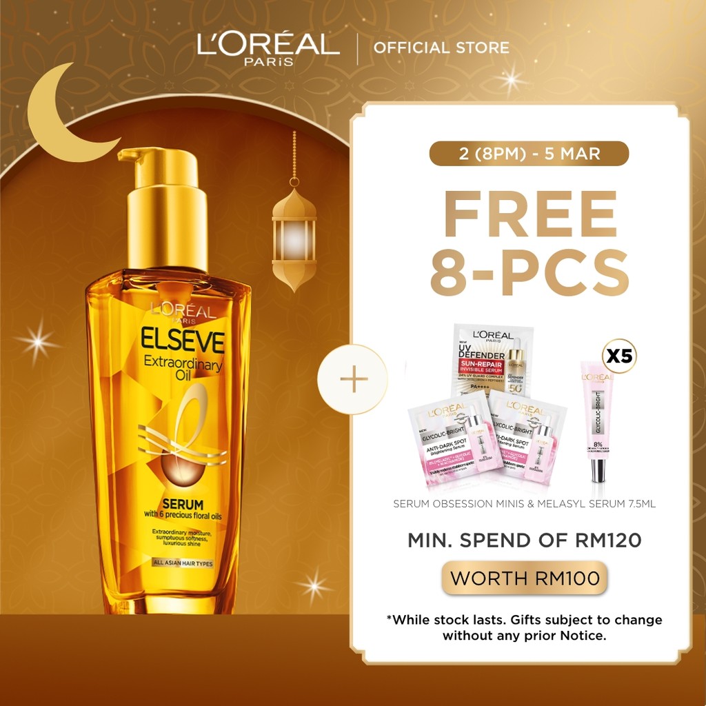 L’Oréal Paris ELSEVE Extraordinary Oil Gold 4x Shine Smoothen Hair Serum Hair Treatment 100ml for All Hair Types