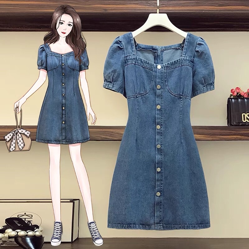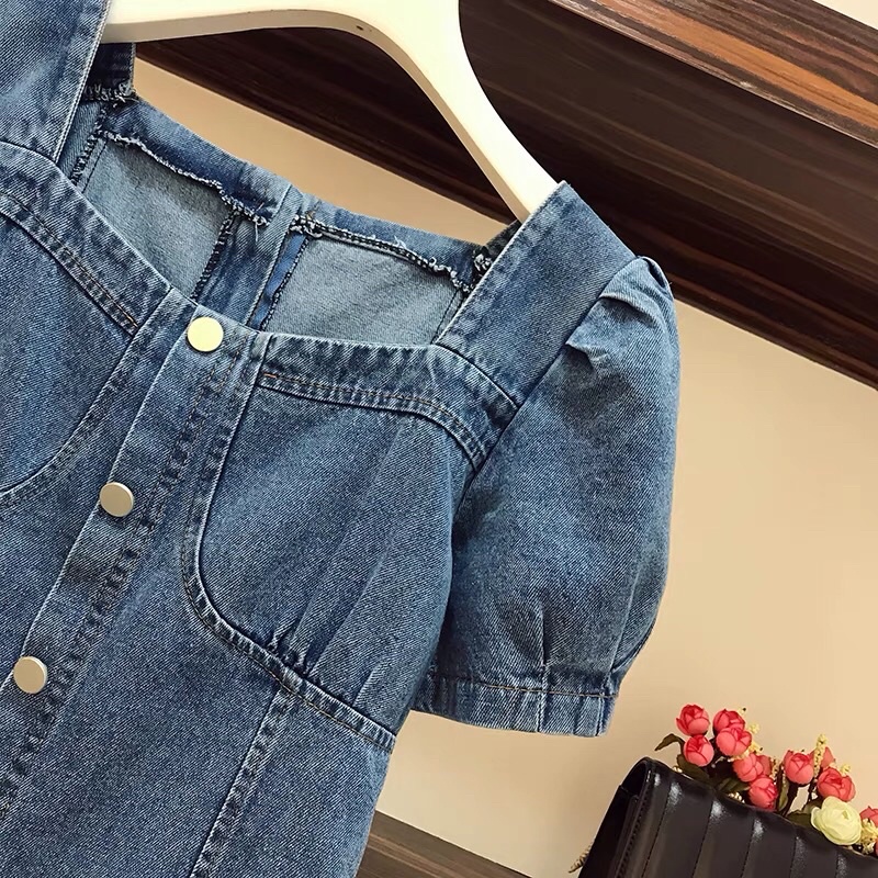 L-4XL Plus Size Denim Mini Dress