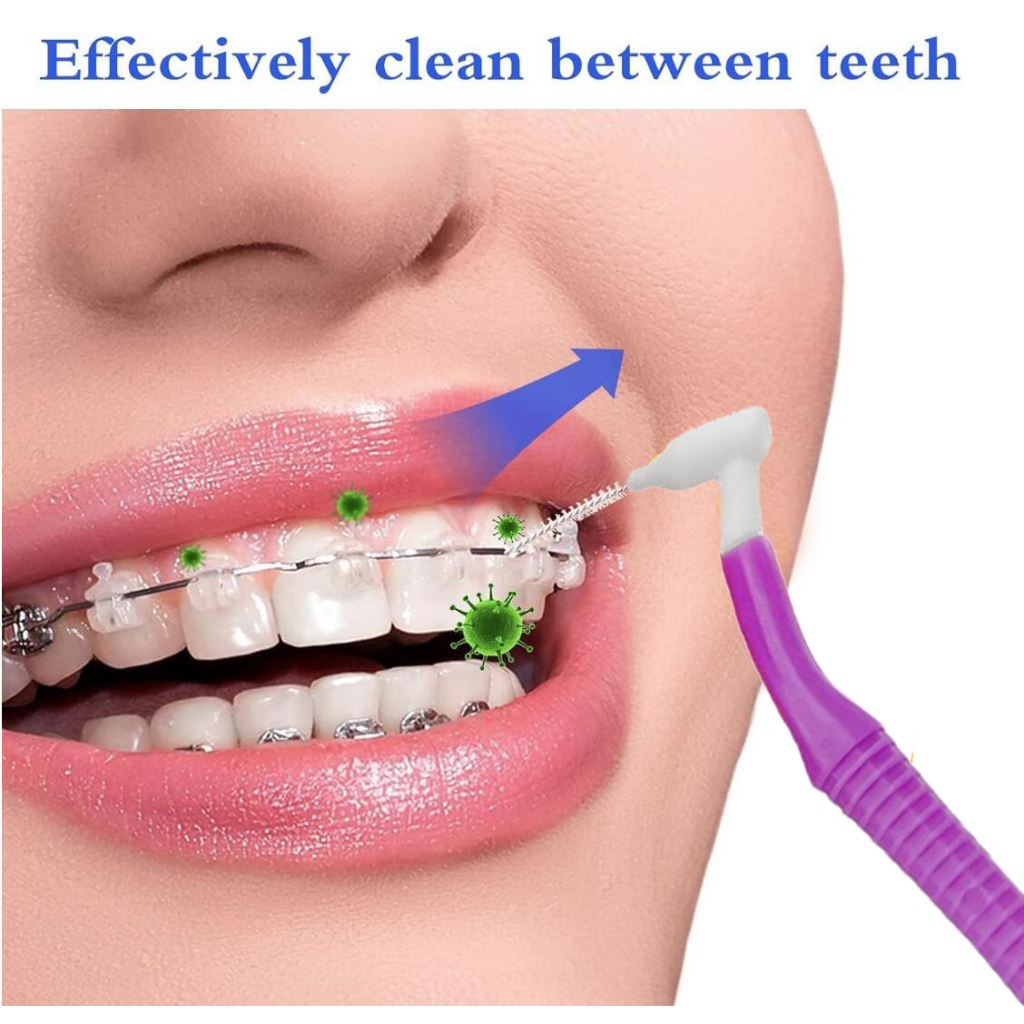 L Angled Reusable Braces Dental Brush Flosser for Cleaner Interdental Brush Toothpick Dental Tooth Flossing Head Oral Dental Toothpick Cleaners Cleaning Tool