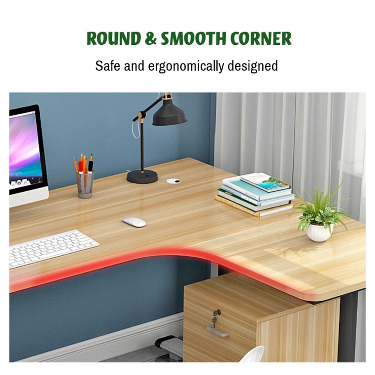 L Shape Office Study Table & Computer Laptop Desk Metal Leg Meja Pejabat Meja Belajar Meja Tulis