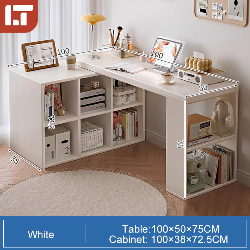 L Shape Study Table Meja Belajar Study Table with Bookshelf Dressing Table L Shape Table Table Makeup Table with Side Cabinet Black Corner Desk