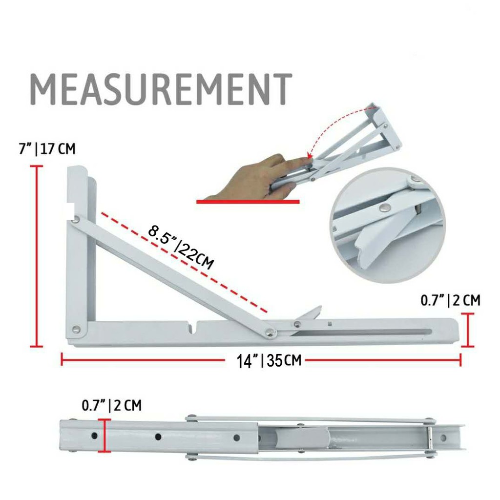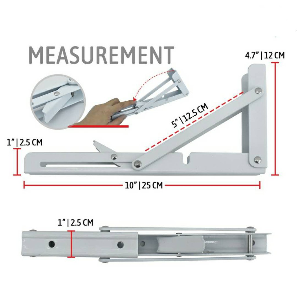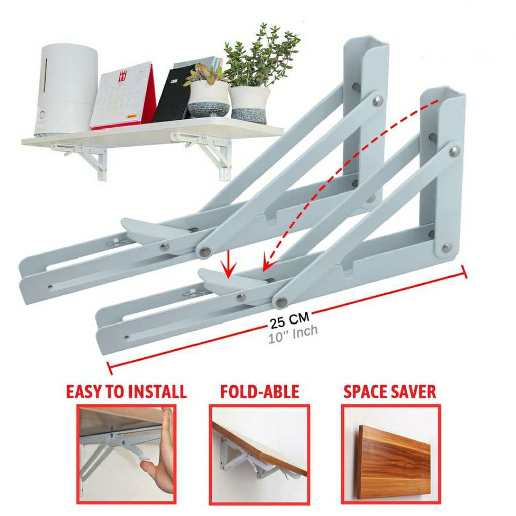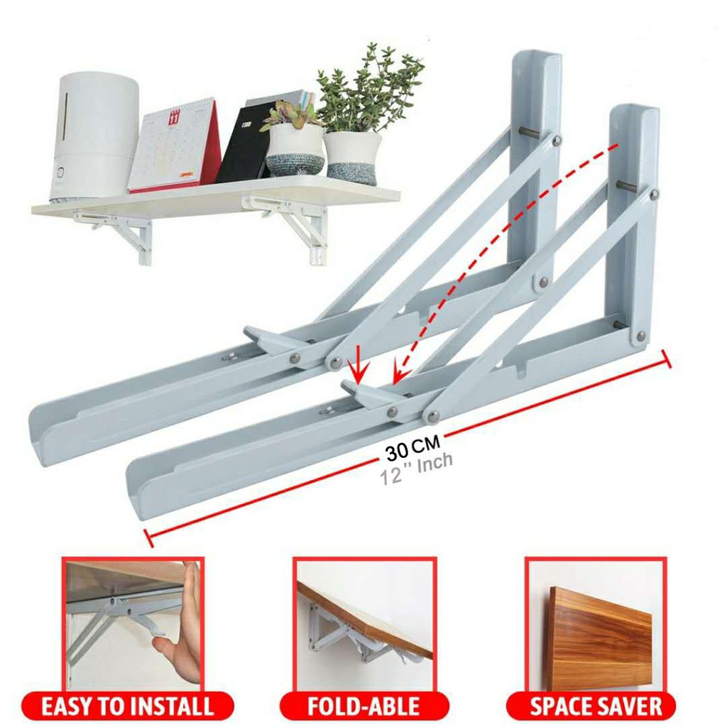L Shape Wall Mount Metal Folding Shelf Bracket in pairs (25CM-10" / 30CM-12" / 35CM-14" / 40CM-16")