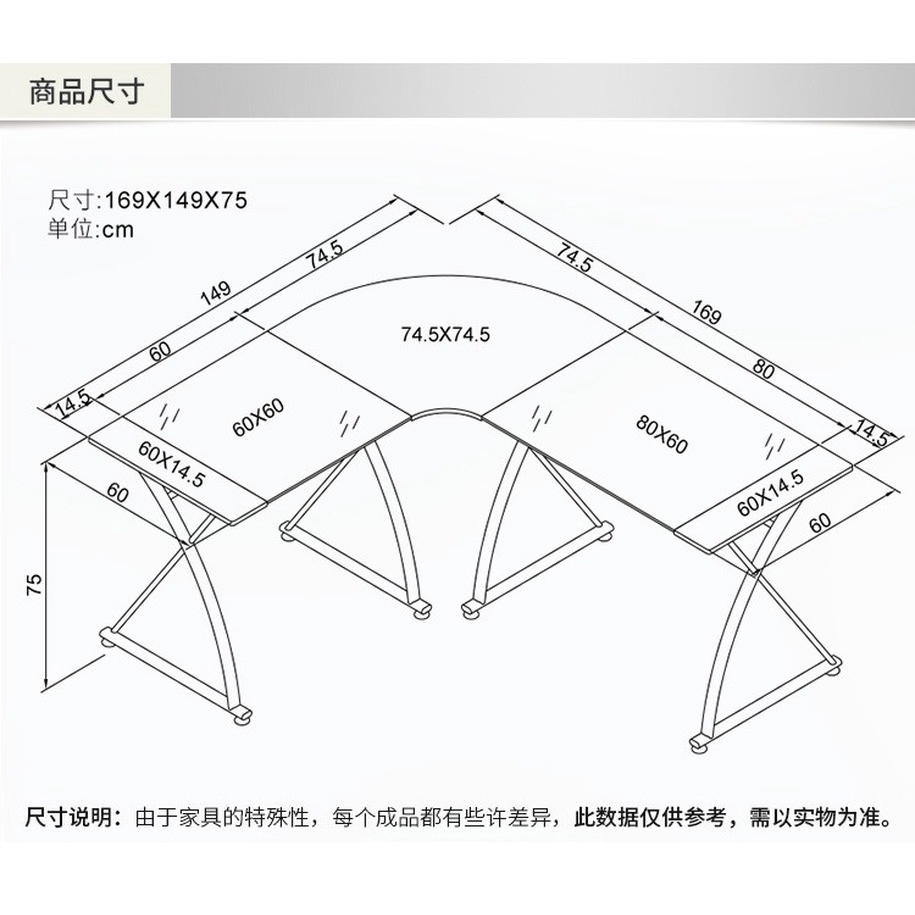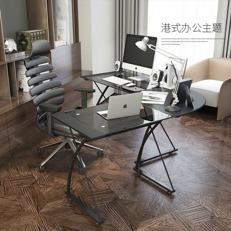 L shape Boss office table gaming table l type computer desk corner desk tempered glass curved workstation desk