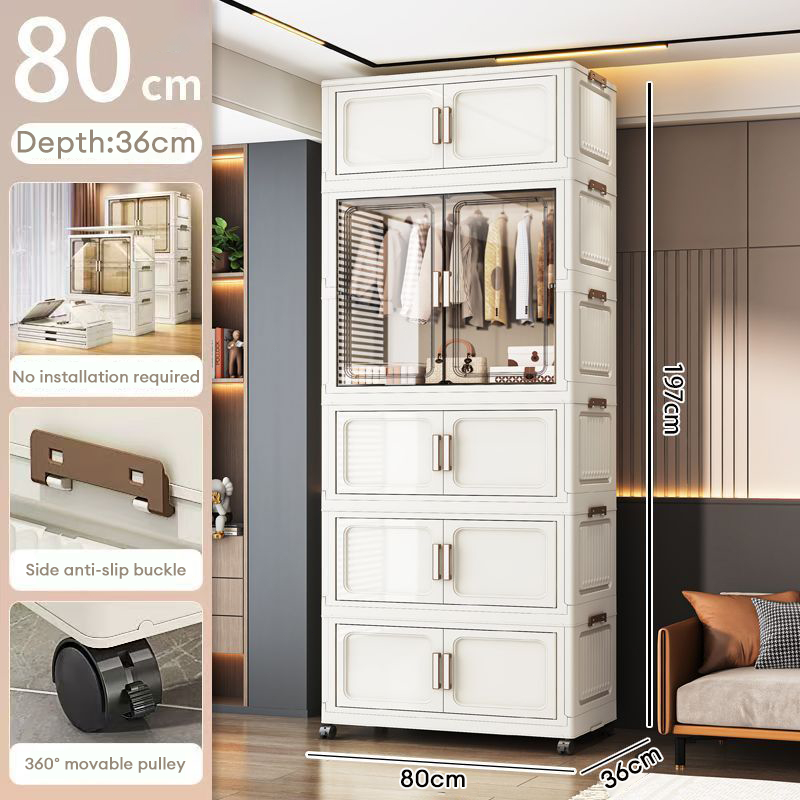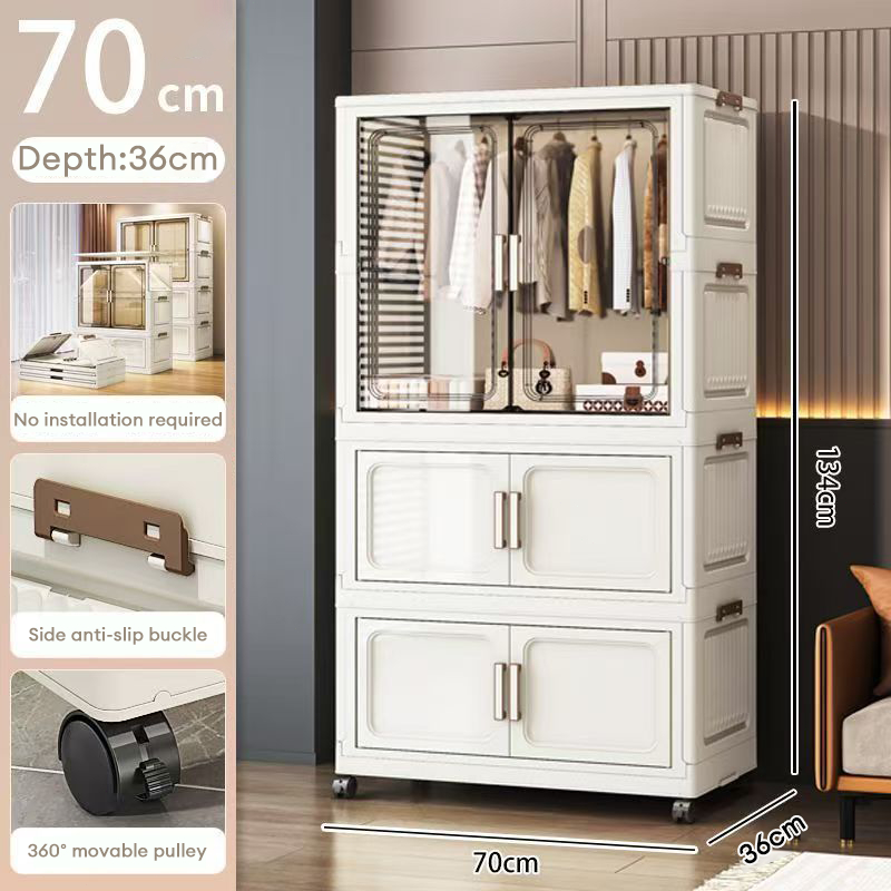 L70/80cm Multipurpose Folding Stackable Wardrobe Storage Almari Baju Storage Cabinet With Pulley