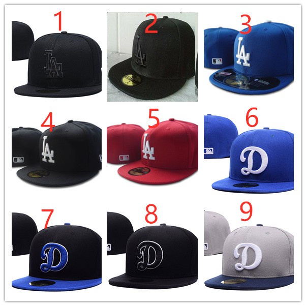 LA Dodgers M-LB Baseball Cap Size cap closed cap tide brand board cap Los Angeles Dodgers flat brimmed cap men's and women's hip hop cap