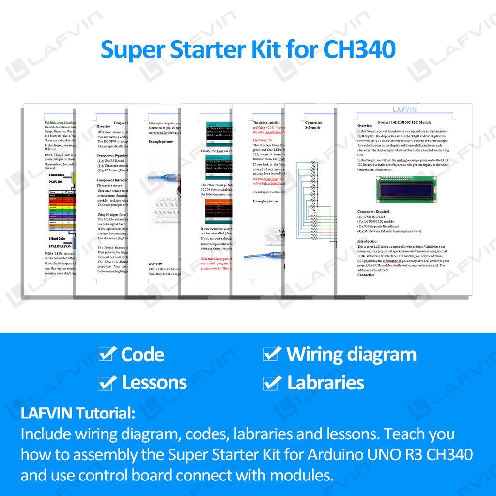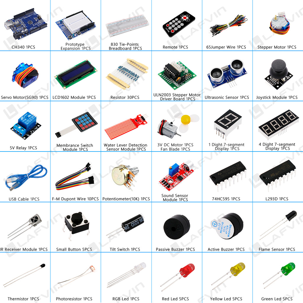 LAFVIN Super Starter Kit with Tutorial for Arduino UNO R3, Included SG90 Servo, Stepper Motor, jumper Wires