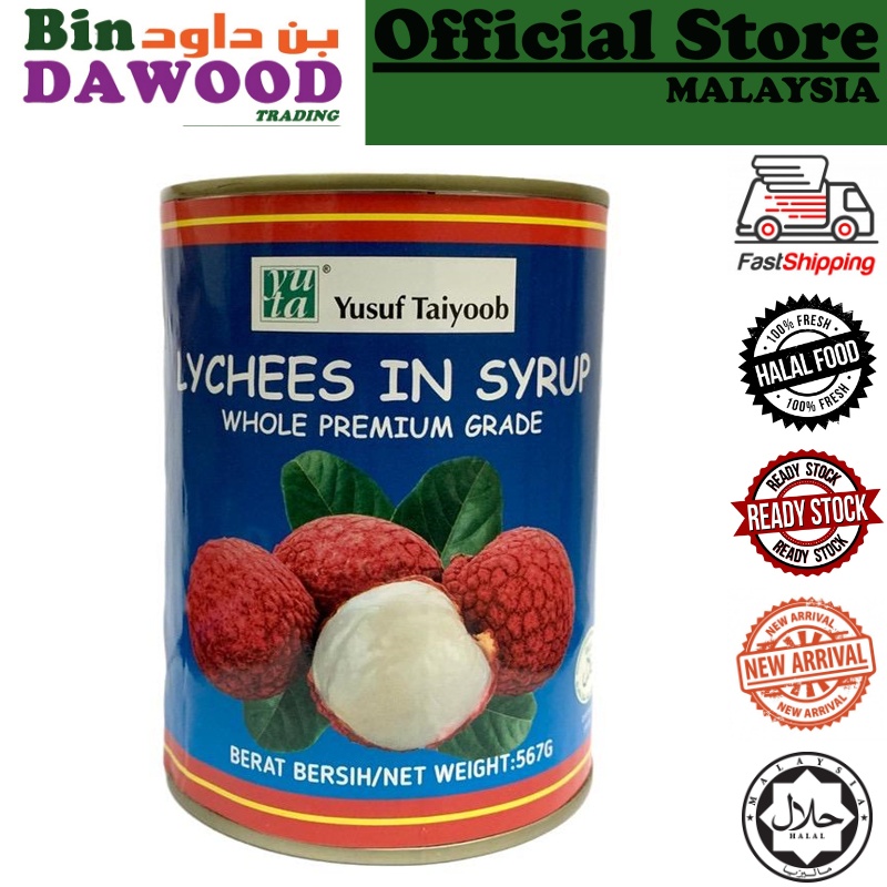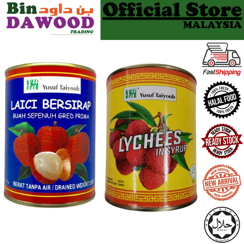 LAICI BERSIRAP TIN YUSUF TAIYOOB BERSIRAP 567G LYCHEE IN SYRUP CANNED HALAL FRESH JUMBO Buah laici