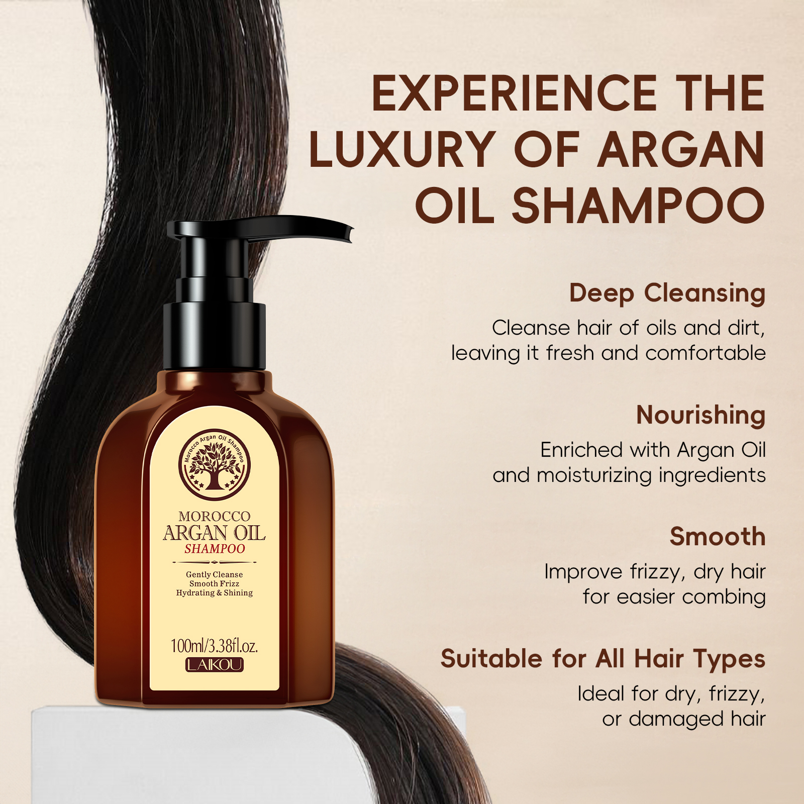 LAIKOU Moroccan Argan Oil Hair Trio: Shampoo, Conditioner & Oil - Tames Frizz & Restores Deeply LAIKOU Set Trio Minyak Rambut Argan Morocco: Syampu, Perapi & Minyak - Mengurangkan Keriting & Memulihkan Secara Mendalam