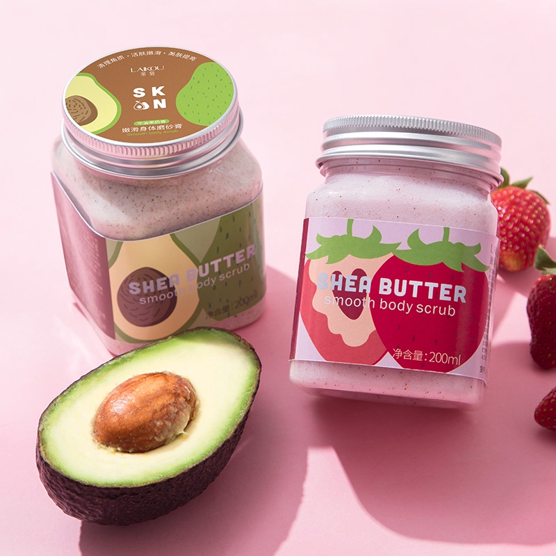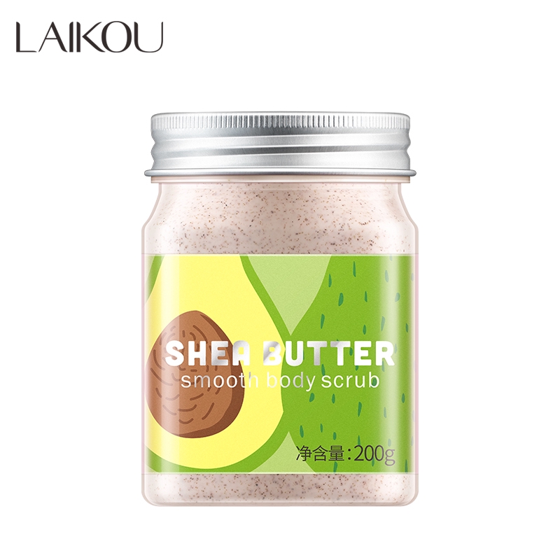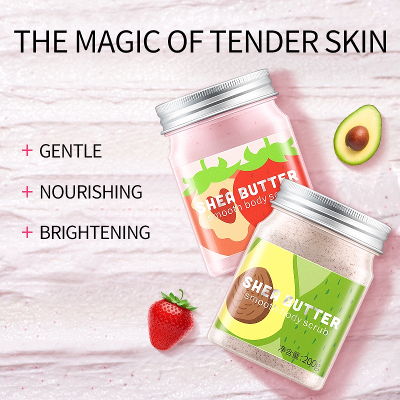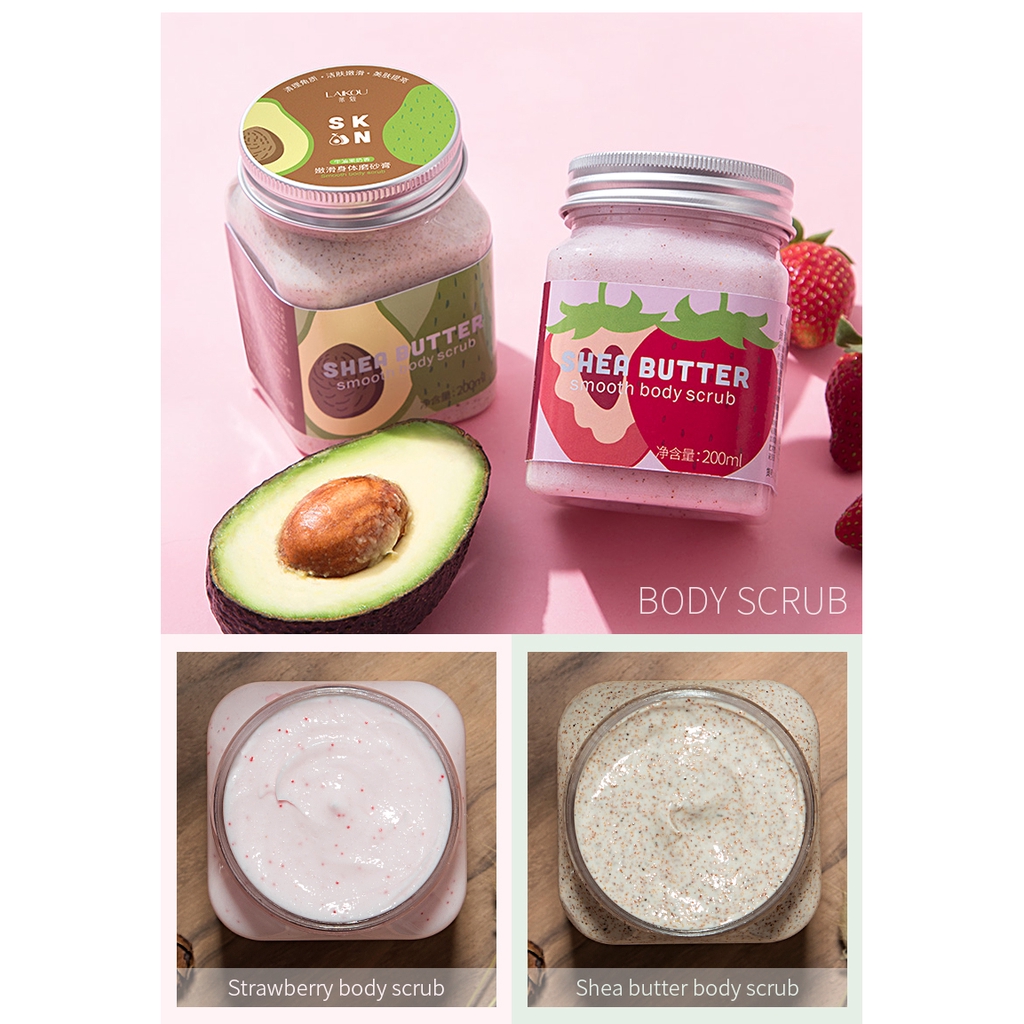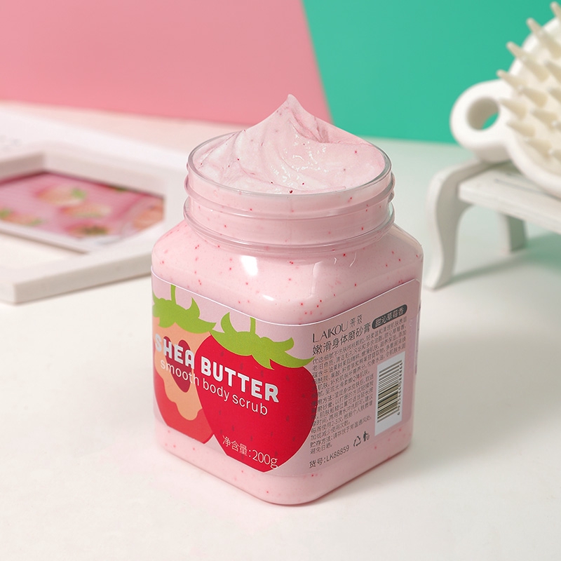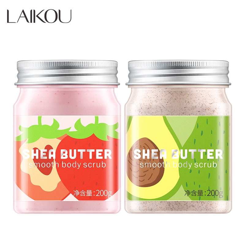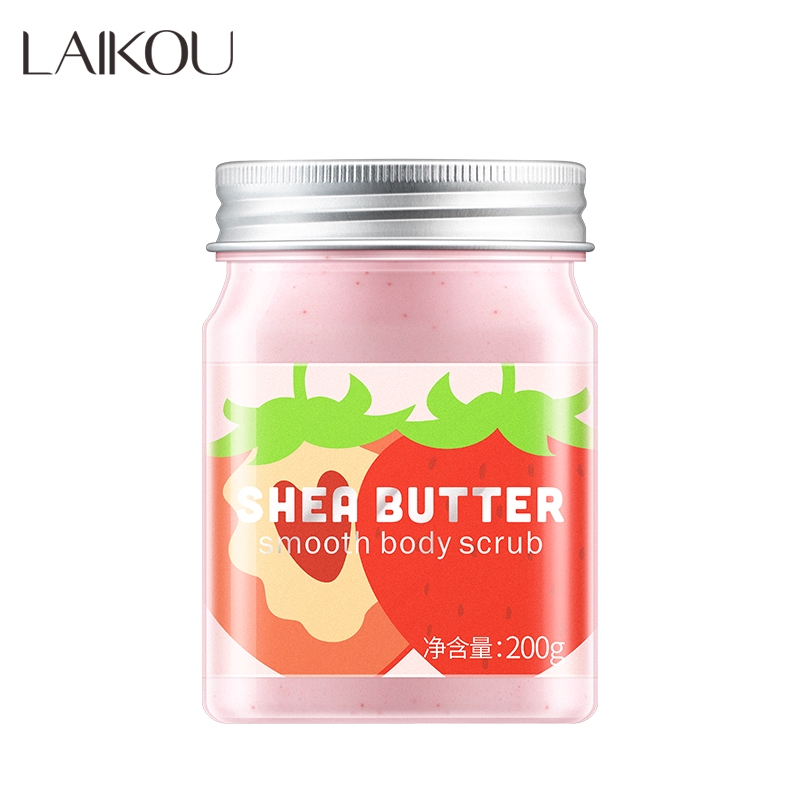 LAIKOU Shea Butter/Strawberry Body Scrub Leg Arm Cleansing Whitening Cream Exfoliating Smooth Nourishing 200ml