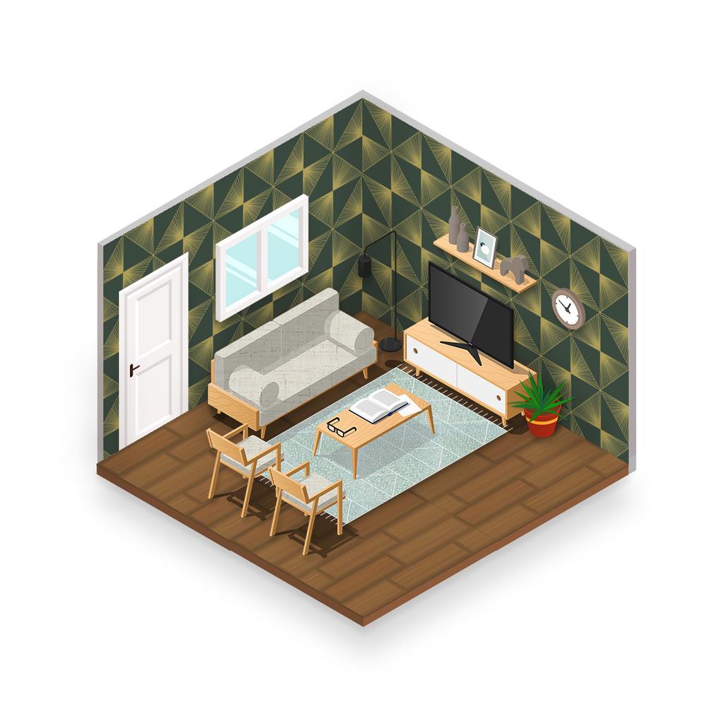 LAMEX EUROPEAN WALLPAPER | #29519 CYBER XI - GREEN GOLD GEOMETRIC DESIGN WALLPAPER