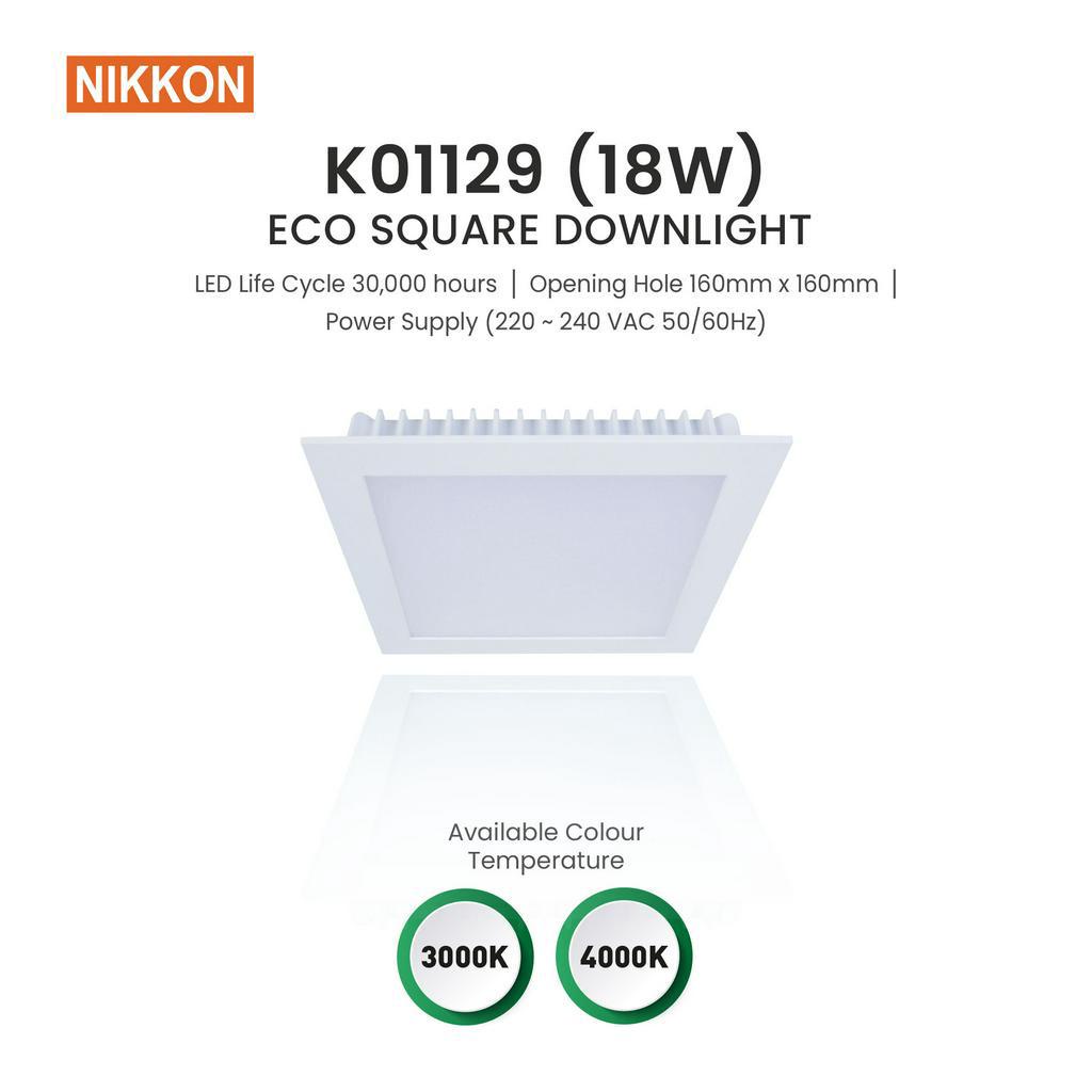 LAMPU SILING BERJENIS DOWNLIGHT SEGI EMPAT - NIKKON ECO SQUARE LED DOWNLIGHT 6INCH (6") 18W 3000K/4000K