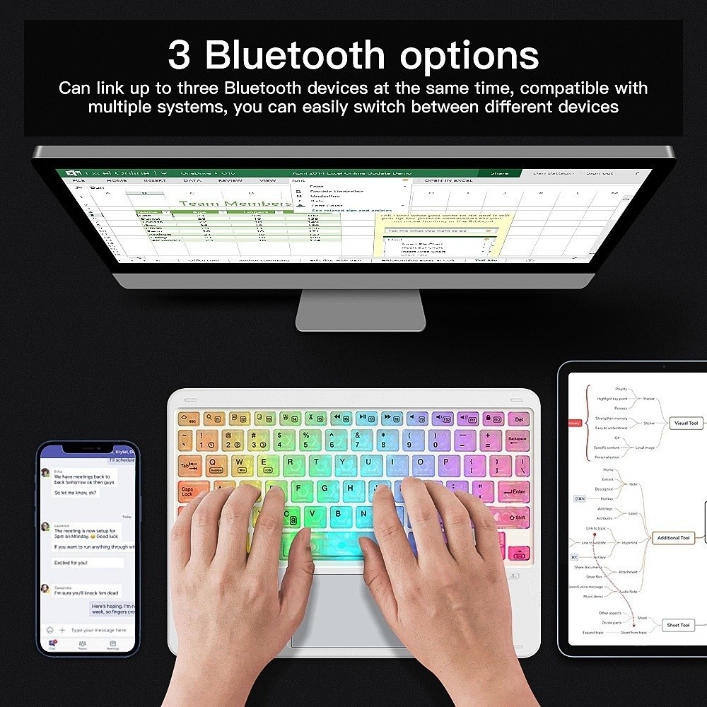 LANFY Wireless Keyboard, Backlit Colorful Luminous Bluetooth Keyboard, Mini Keypad Slim Design Lightweight Compact Portable Keyboard Office