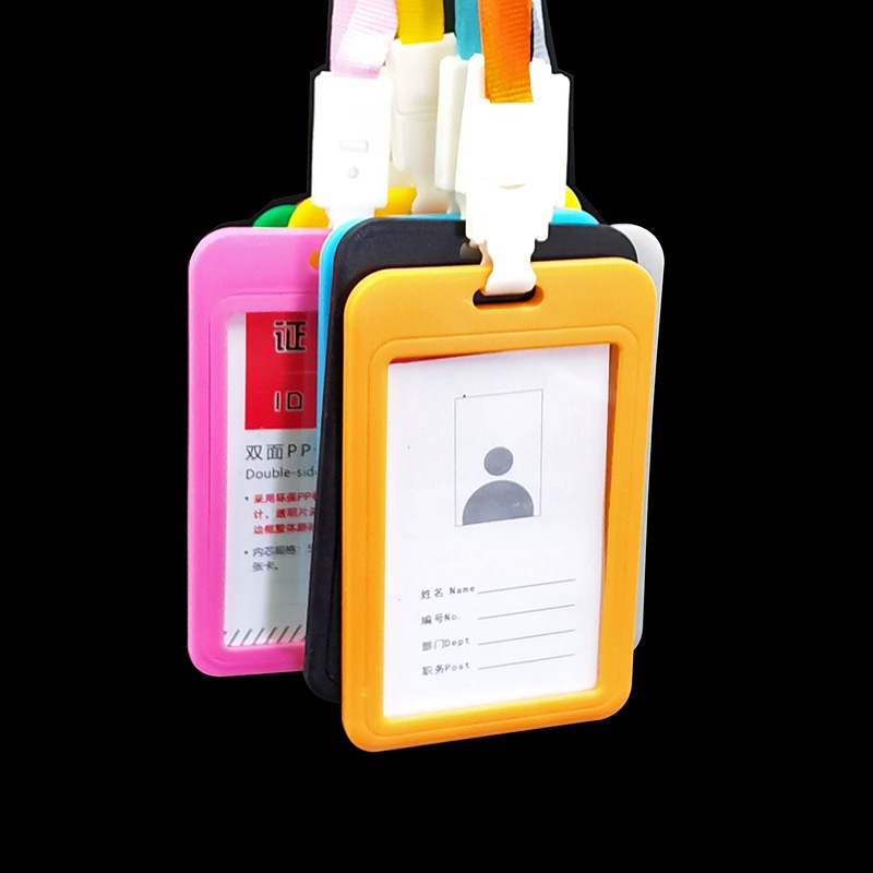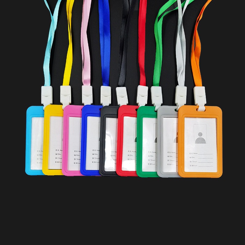 Plain Color Front Kuromi Lanyard Card Holder • Portrait Name Tag Strap • ID Badge Holder (Random Color / Black)
