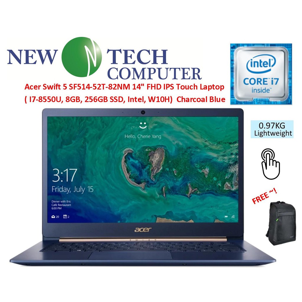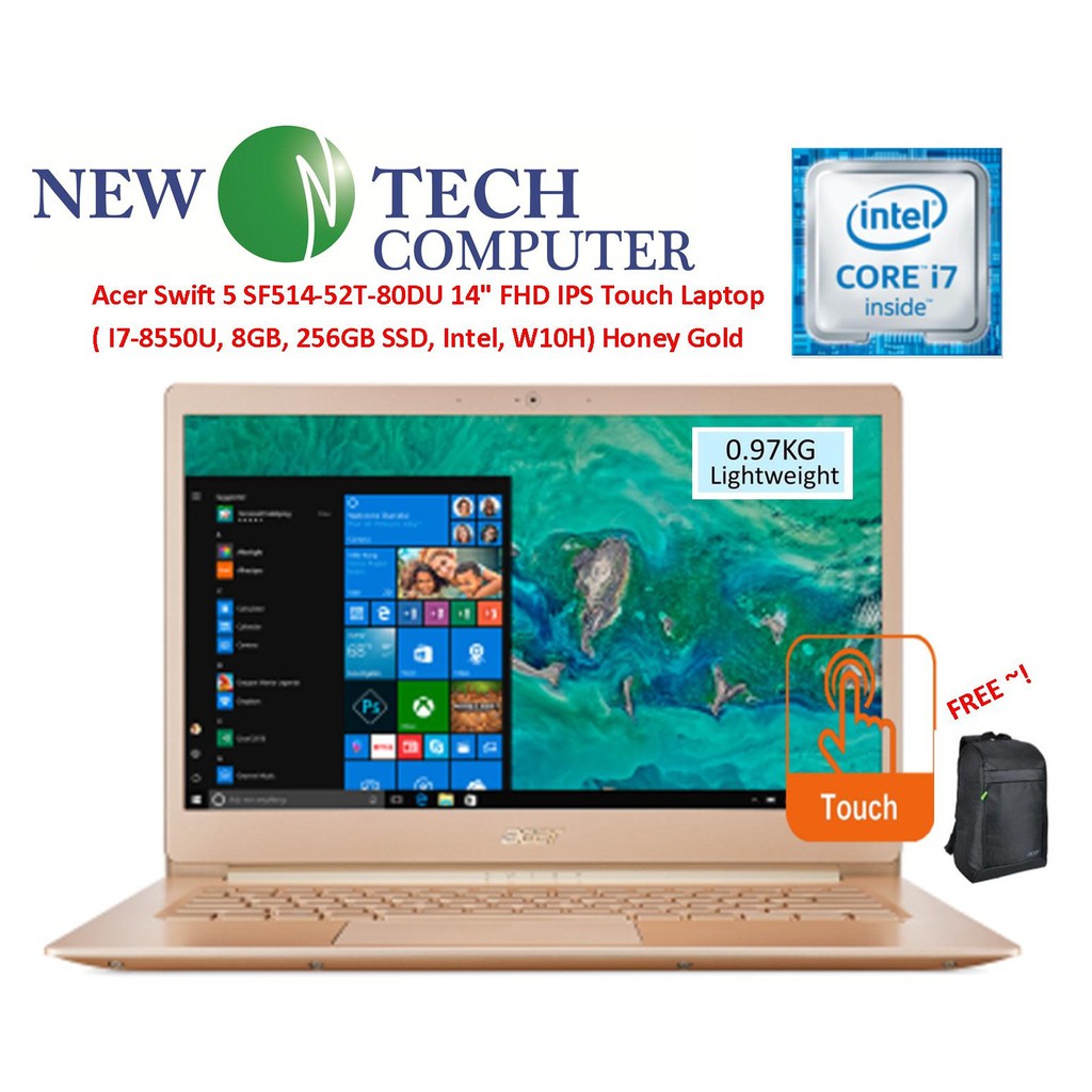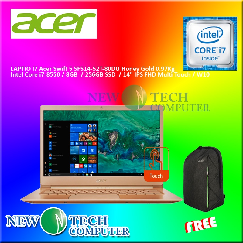 LAPTIO I7 Acer Swift 5 SF514-52T-80DU Honey Gold Intel Core i7-8550 / 8GB / 256GB SSD / 14" IPS FHD Multi Touch / W10