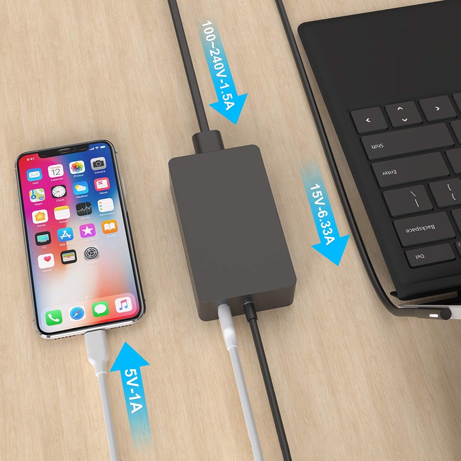 LAPTOP CHAGER MICROSOFT SURFACE BOOK 2 SURFACE 15V 6.33A 102W BOOK2 MODEL 1798 CHARGER ADAPTER PRO 3 / 4