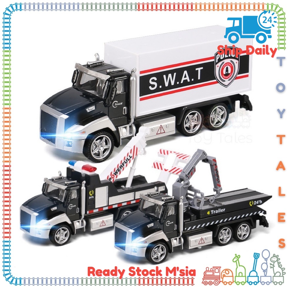 LARGE Sound & Lights Alloy Die Cast Police Rescue Toy Cars Kids Vehicle Mobile Crane Truck Tow Truck 1:42 Die-Cast