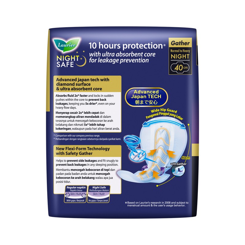 LAURIER Night Safe Wing with Gathers Twin Pack (40cm x 8s)