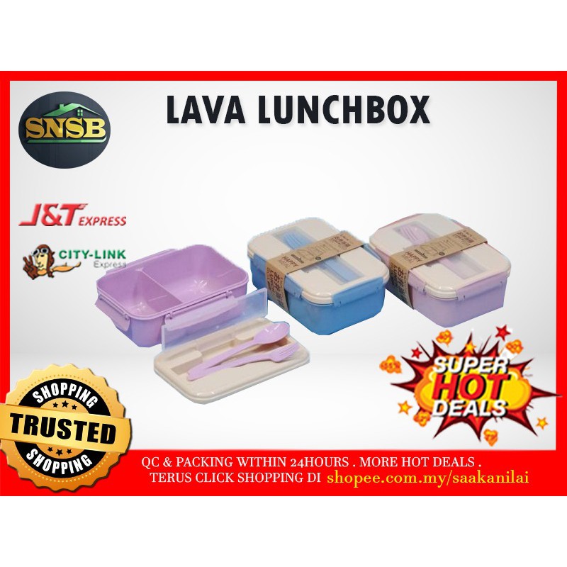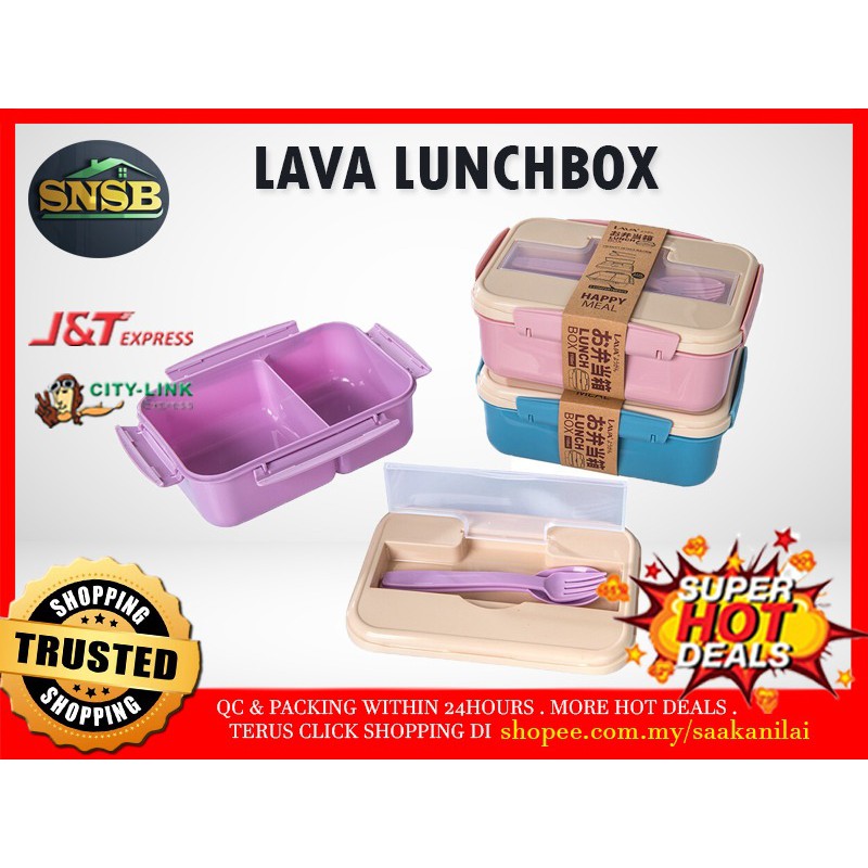 LAVA 2 Compartment Leak Proof Lunch Box With Fork & Spoon / Bekas Makanan 2 Bahagian Brand LAVA