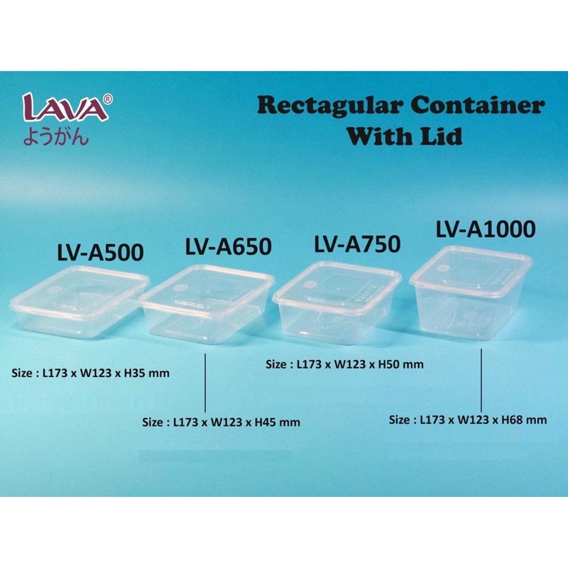 LAVA A500 A650 A750 A1000 Microwave Reheating Plastic Rectangular Food Container With Lid / Kotak Bekas Makanan Plastik