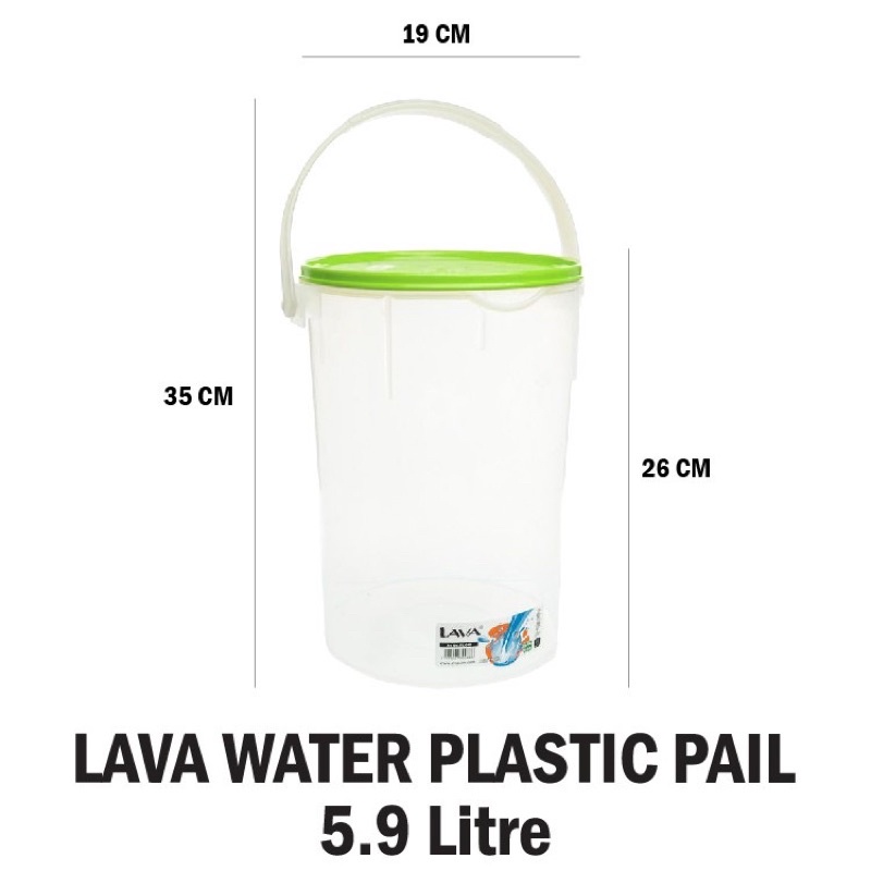 LAVA Water Plastic Pail (5.9L) Container Bucket BPA Free Airtight / Baldi Air Plastik PL038