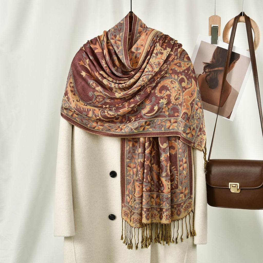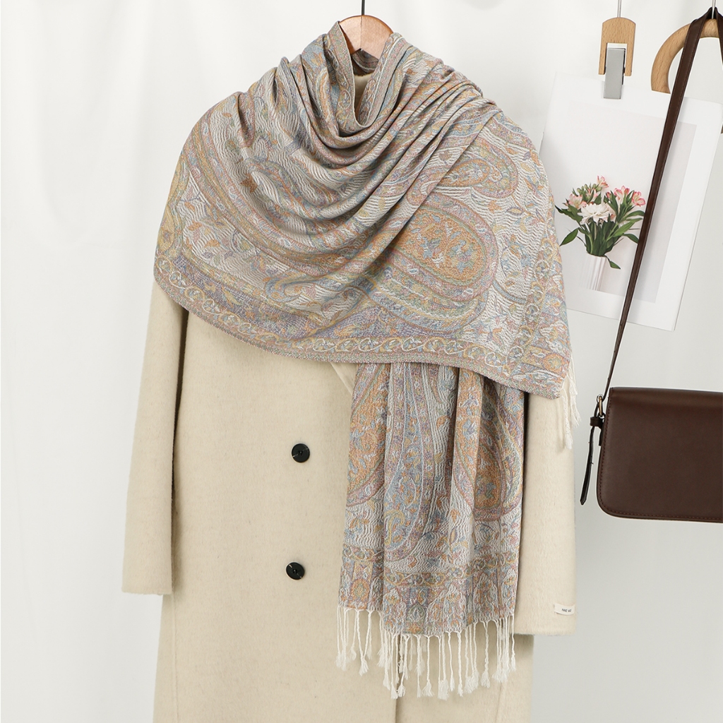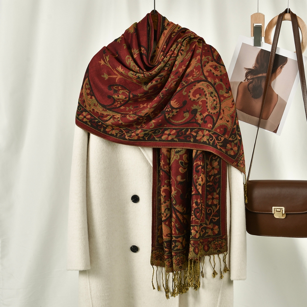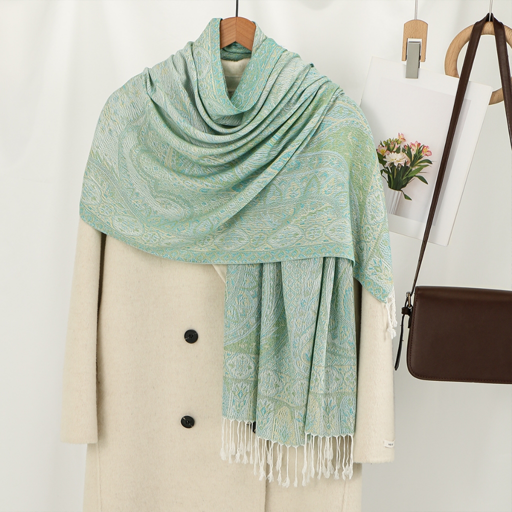 LAVEN Cashew Printed Pashmina Shawl Thick Jacquard Tassel Shawl Women Comfortable Hijab Muslim Headscarf Tudung