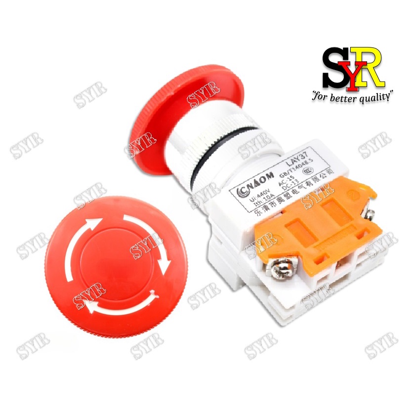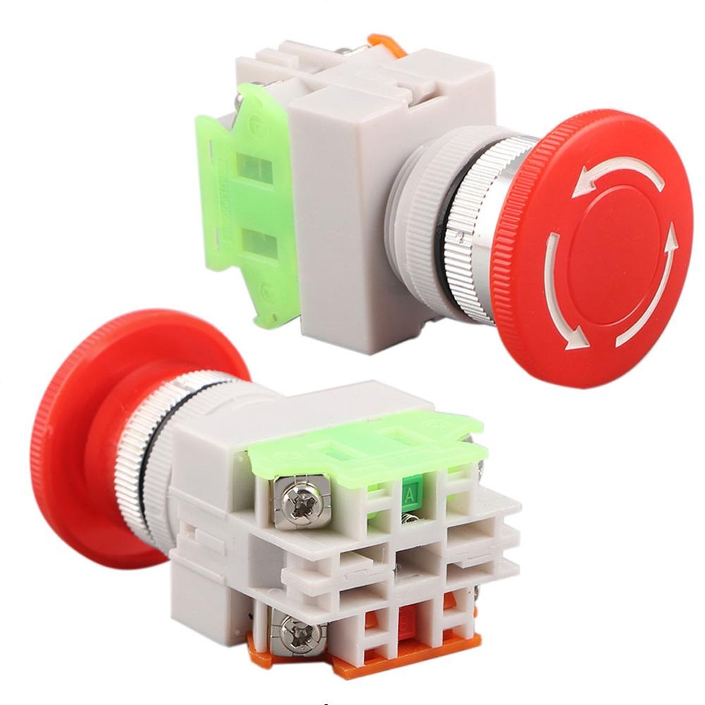 LAY37 2 PIN / 4 PIN Emergency E-Stop Push Button Switch 10A, 440V Self-Lock Locking Mushroom