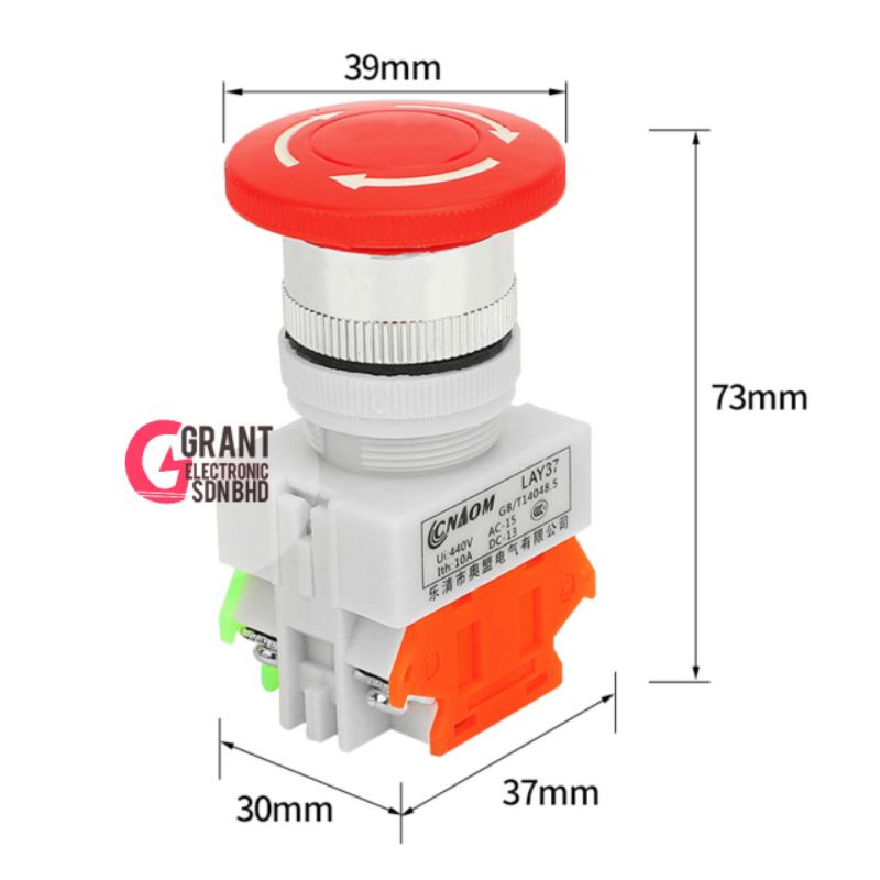 LAY37 Emergency Push button Stop button 22mm hole 1NC 1NO
