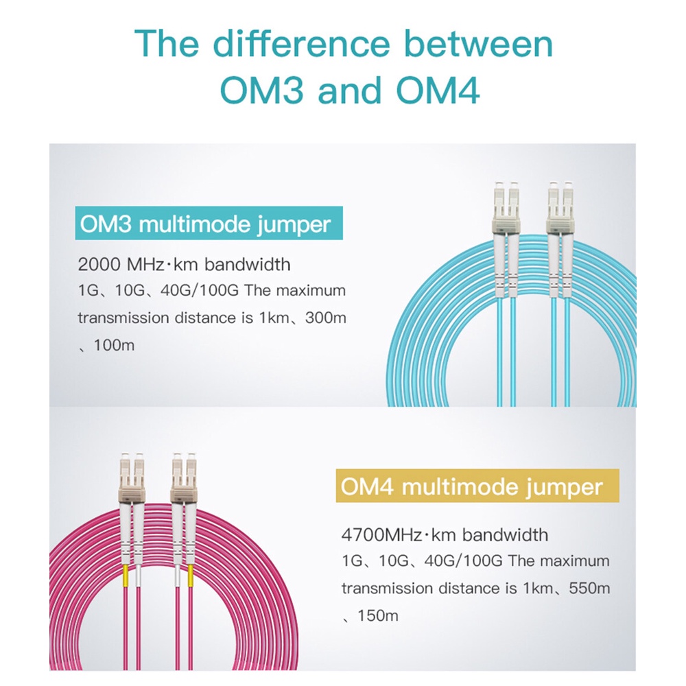 LC-LC OM3 Multi Mode Duplex Fiber Optic Patch Cord Cable 50/125 MM MMF Multimode LAN jumper 10G LC/LC Dual core LC to LC