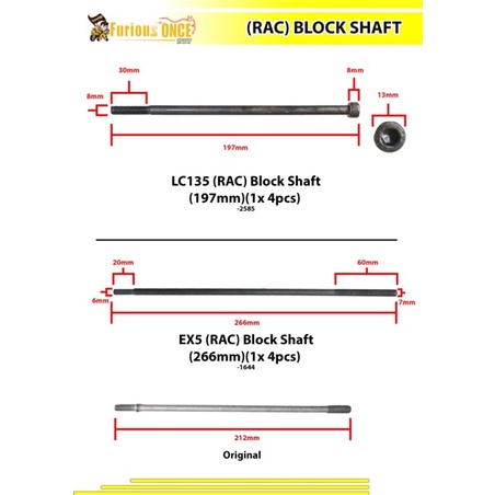 LC135 FZ150 Y15 Y15ZR BLOCK SHAFT TIANG BLOCK SUPER RACING 4BIG 2SMALL FURIOUSONCE BATANG SHAFT LC135 BATANG SHAFT y15