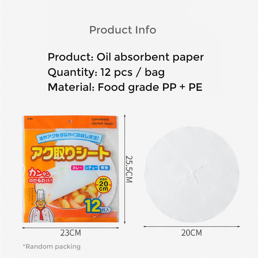 LDS 12pcs/set disposable food oil-absorbing paper kitchen oil-absorbing soup baking food stewing soup frying oil filter