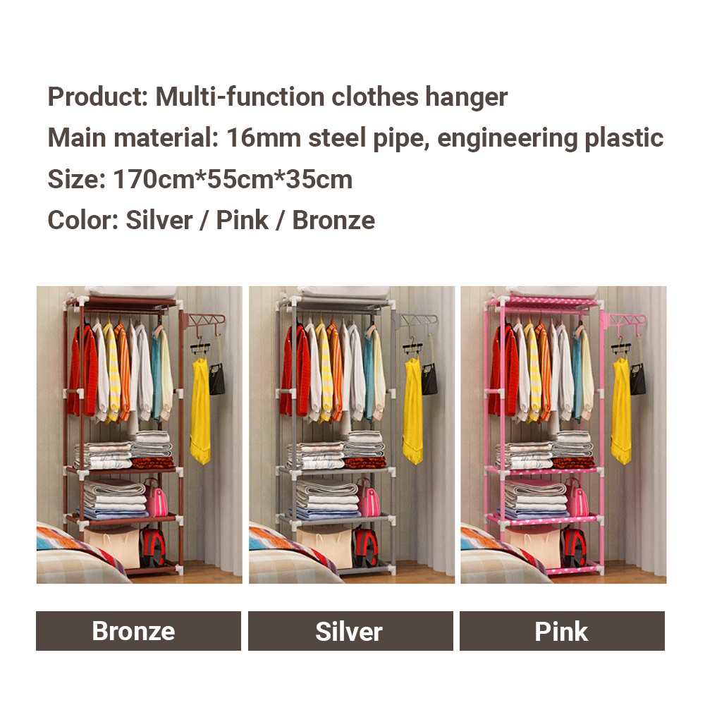 LDS Rak Almari Besi Almari Budak Almari Baju Penyidai Baju Rak Baju Large Stainless Steel Wardrobe Storage Clothes Rack