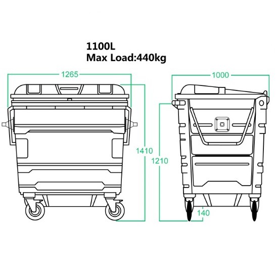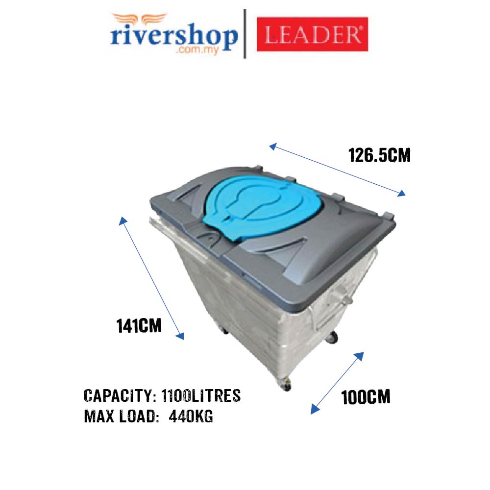 LEADER 1100Litres Hot Dipped Galvanised Mobile Garbage Bin Storm 1100L Compost WasteBin Rubbish Trash Bin, Rivershop