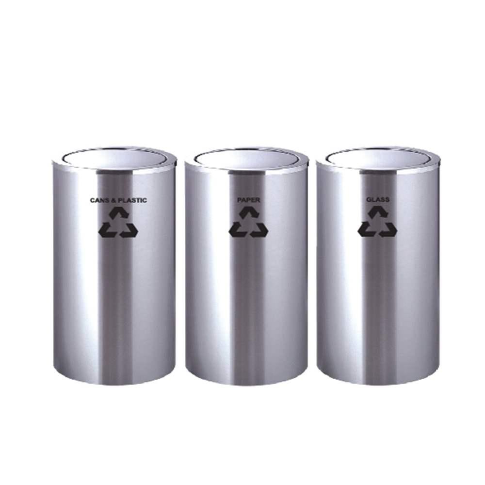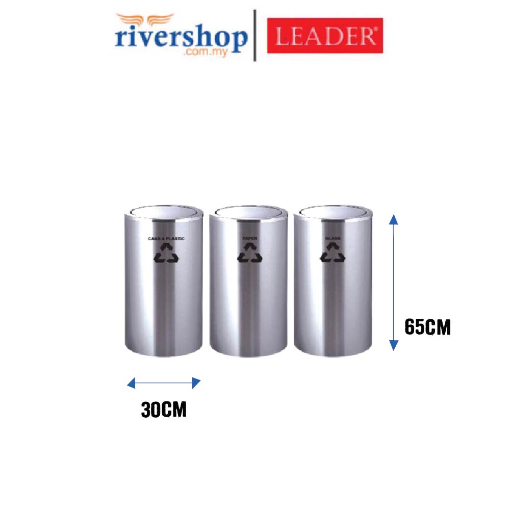 LEADER 3 x 19Litres Stainless Steel Flip Top / Swing Top Recycle Bin Wastebin 3 x 19L Dustbin Rubbish Trash Can