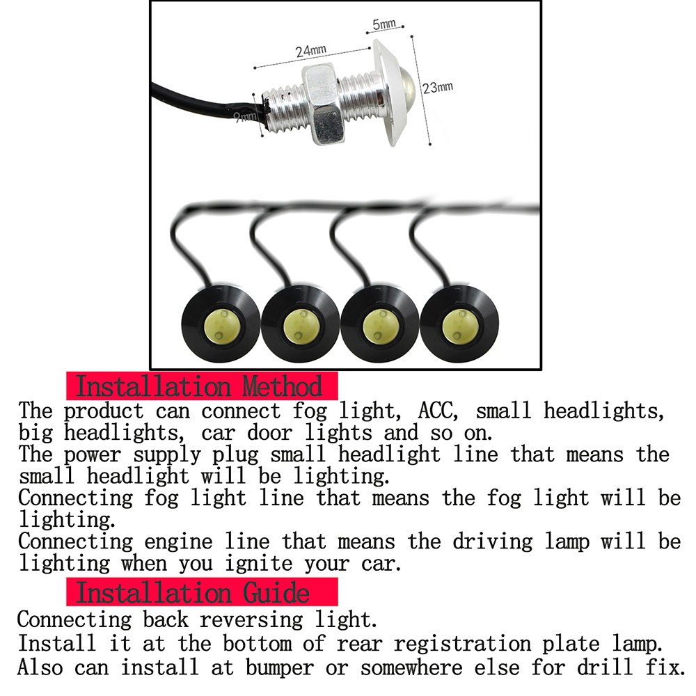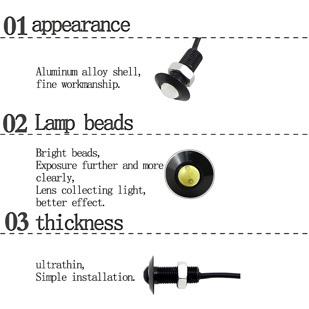 LEADTOPS Auto LED DRL Daytime Running Lights Eagle Eye Car 12V Small Light Source 100% Ultra Thin (2.3cm x 10 Pcs)