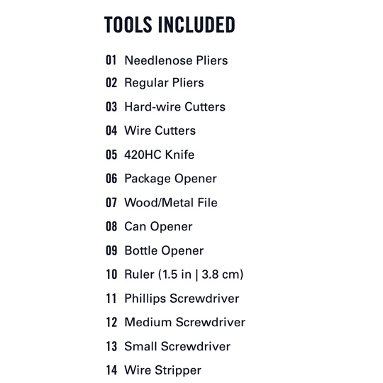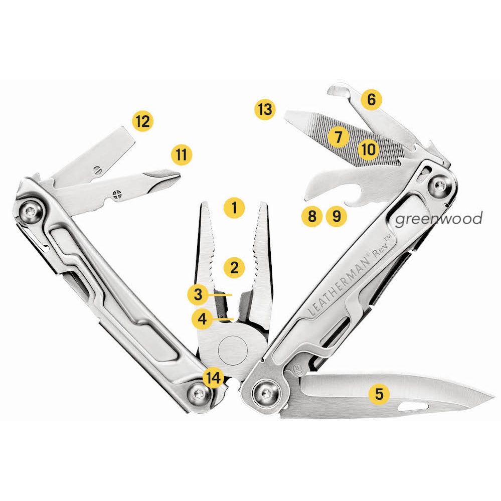 LEATHERMAN Rev 14 Tools (Locking Blade, Pliers, Cutters, Blade, File, Screwdriver, Wire Stripper)