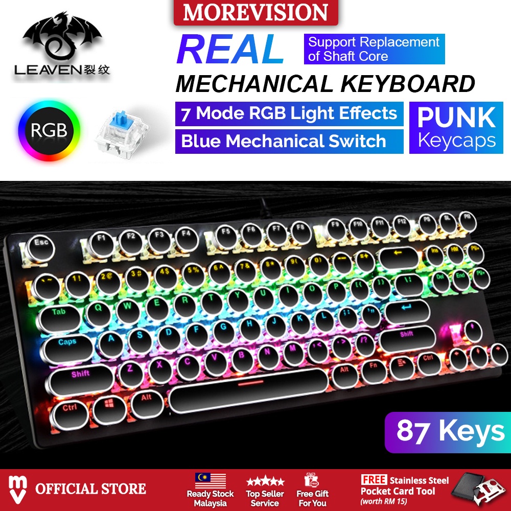 LEAVEN Punk REAL Blue Switch RGB Mechanical Keyboard 87/104 Keys Gaming Backlight Keycaps For Office Laptop PC Notebook