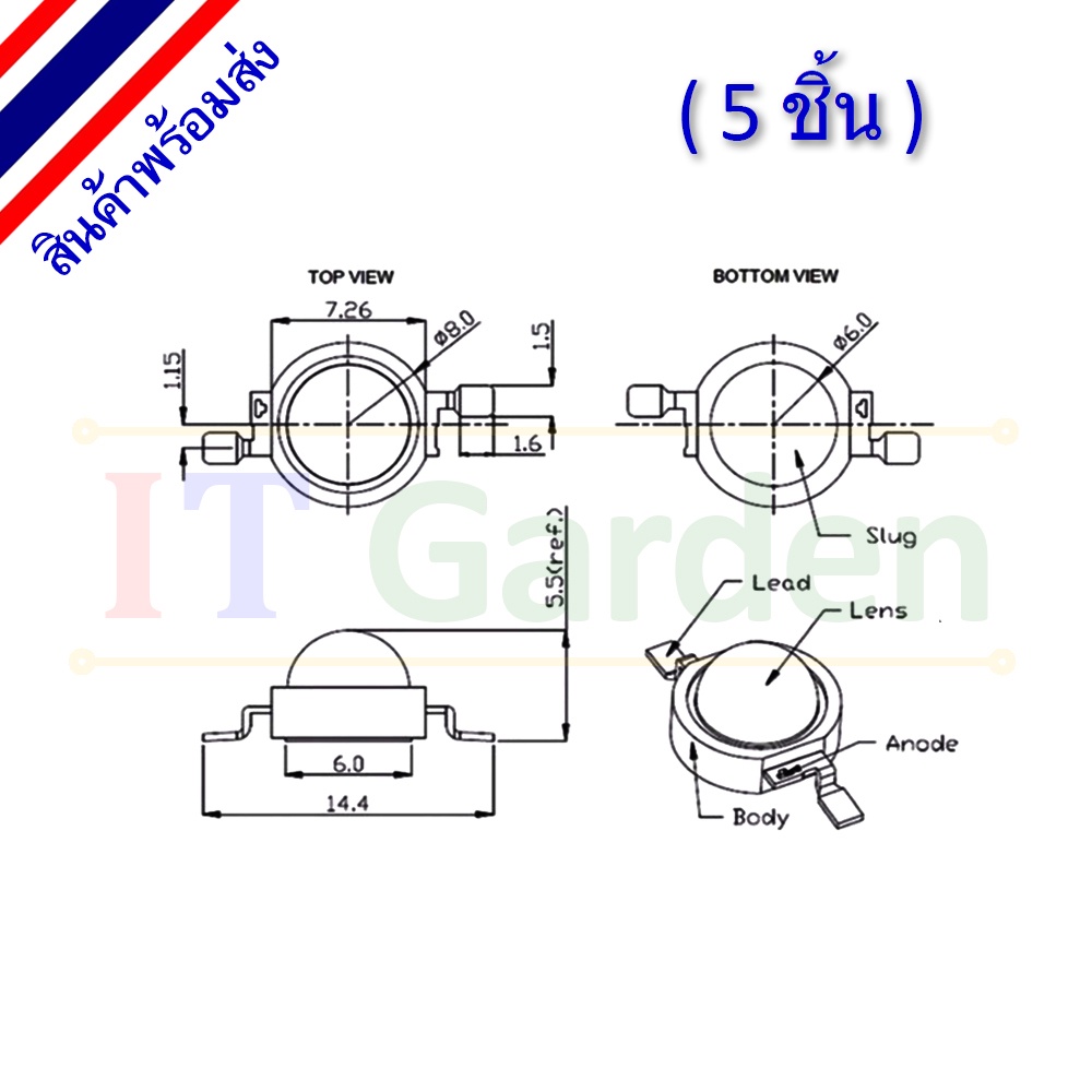LED 1W High power 350mA (5 Pieces)