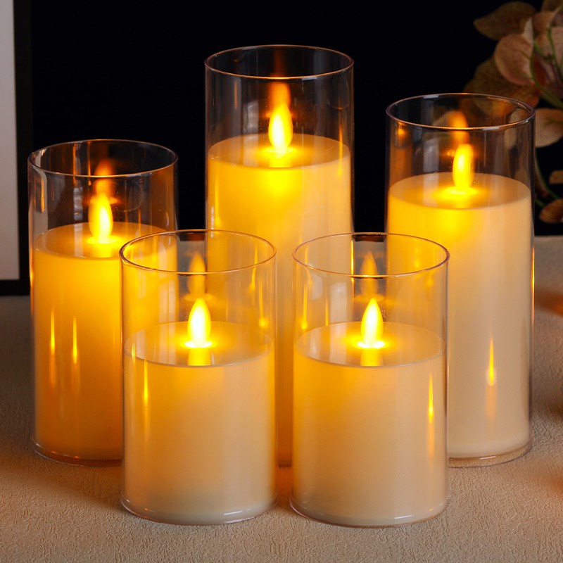 LED Acrylic Glass Pillar Candle Lights / Flameless Flickering Candle Lamp / Battery Operated LED Tea Light / Warm White Electronic Fake Candle / Home Festival Party Decor Supplies