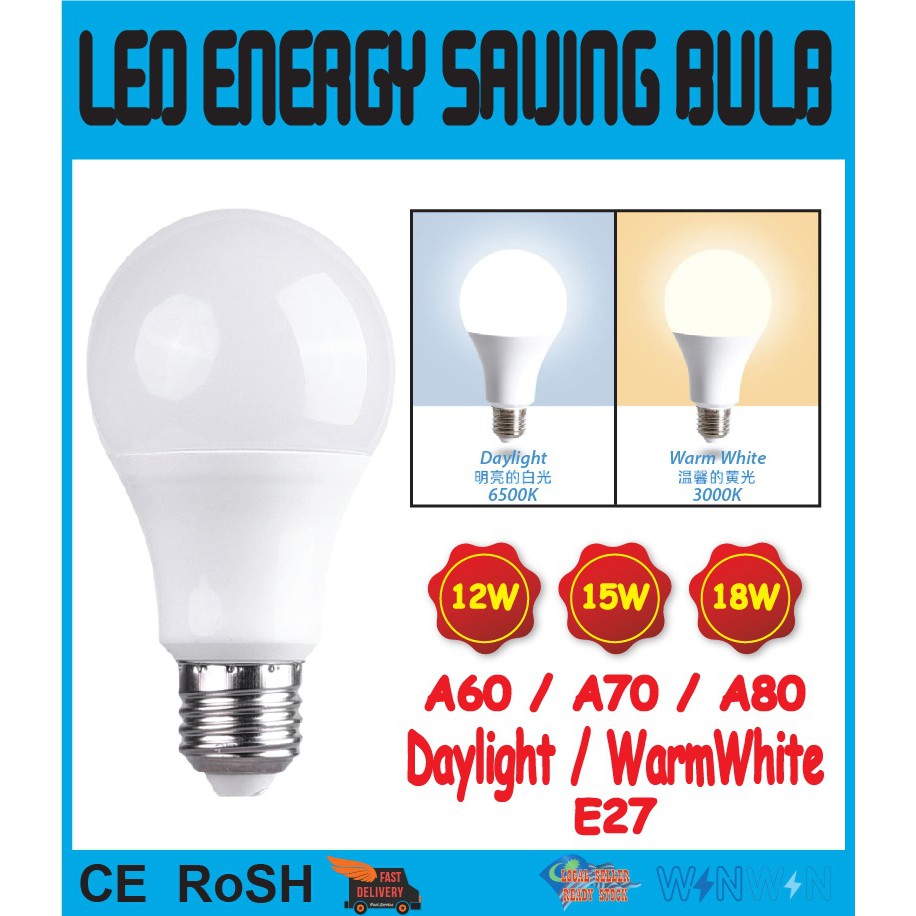 LED BULB 12W 15W 18W A60 A70 A80 LED LIGHT BULB ENERYGY SAVING SUPER BRIGHT BULB | E27 | Daylight / Warm White