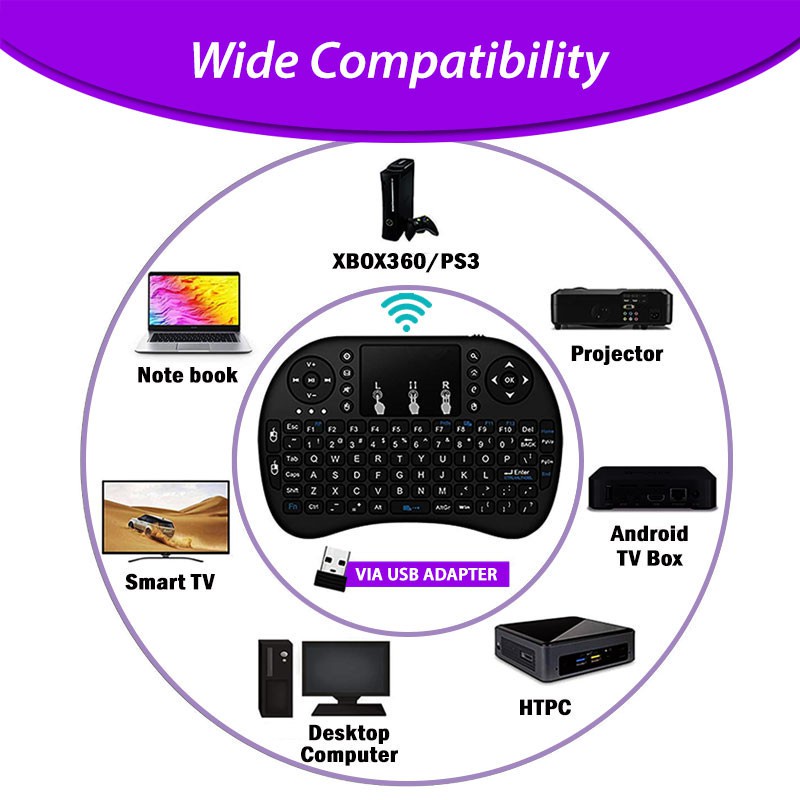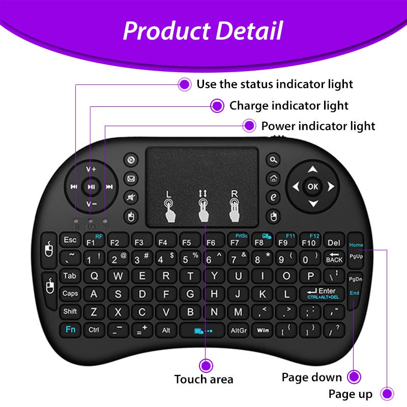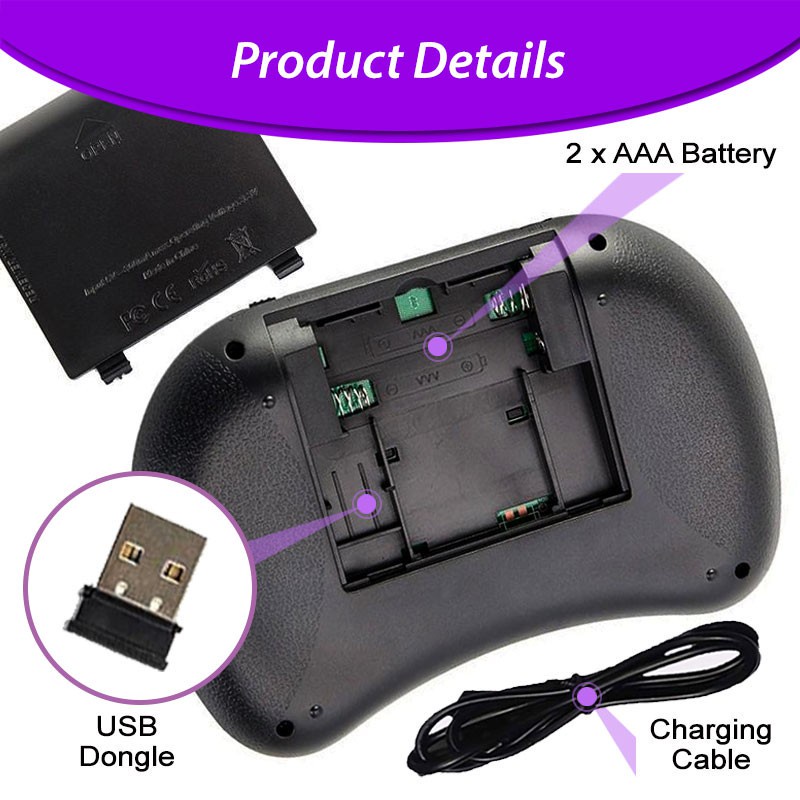 LED Backlit Battery Wireless Mini Keyboard Touchpad USB Bluetooth Dongle Handheld Remote Control TV
