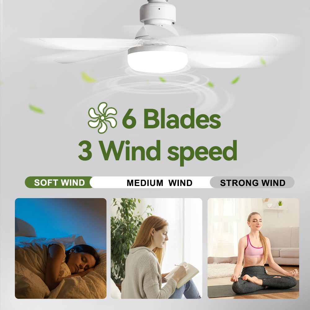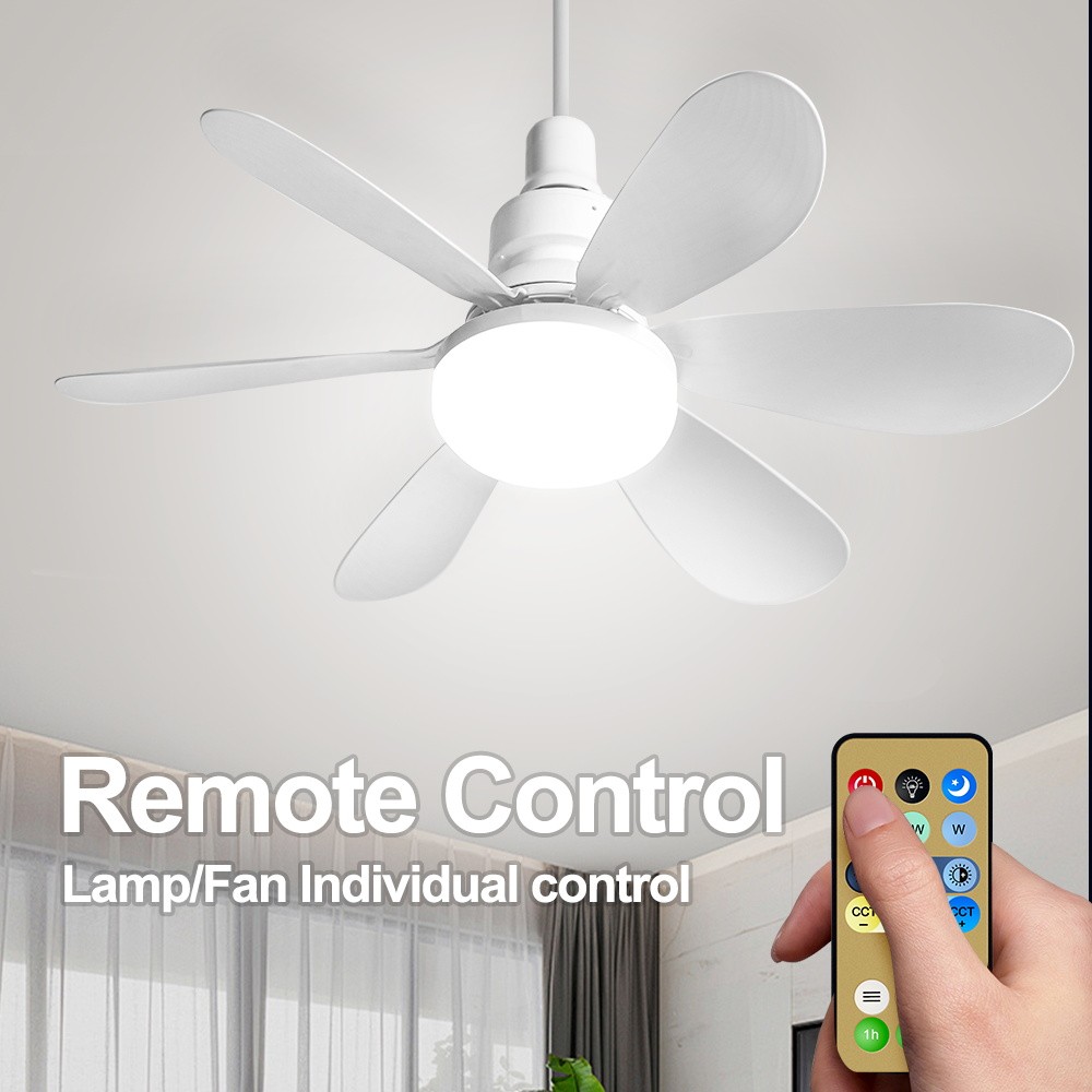 LED Ceiling Fan Light Wireless Remote Control Dimmable Lampu Kipas 200V E27 Mini Silent Fans Lamp