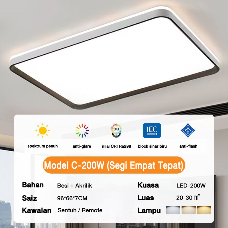 【3 WARNA BOLEH TUKAR】Lampu Siling LED Moden - Untuk Ruang Tamu & Bilik Tidur, Cahaya Lembut, Jimat Elektrik