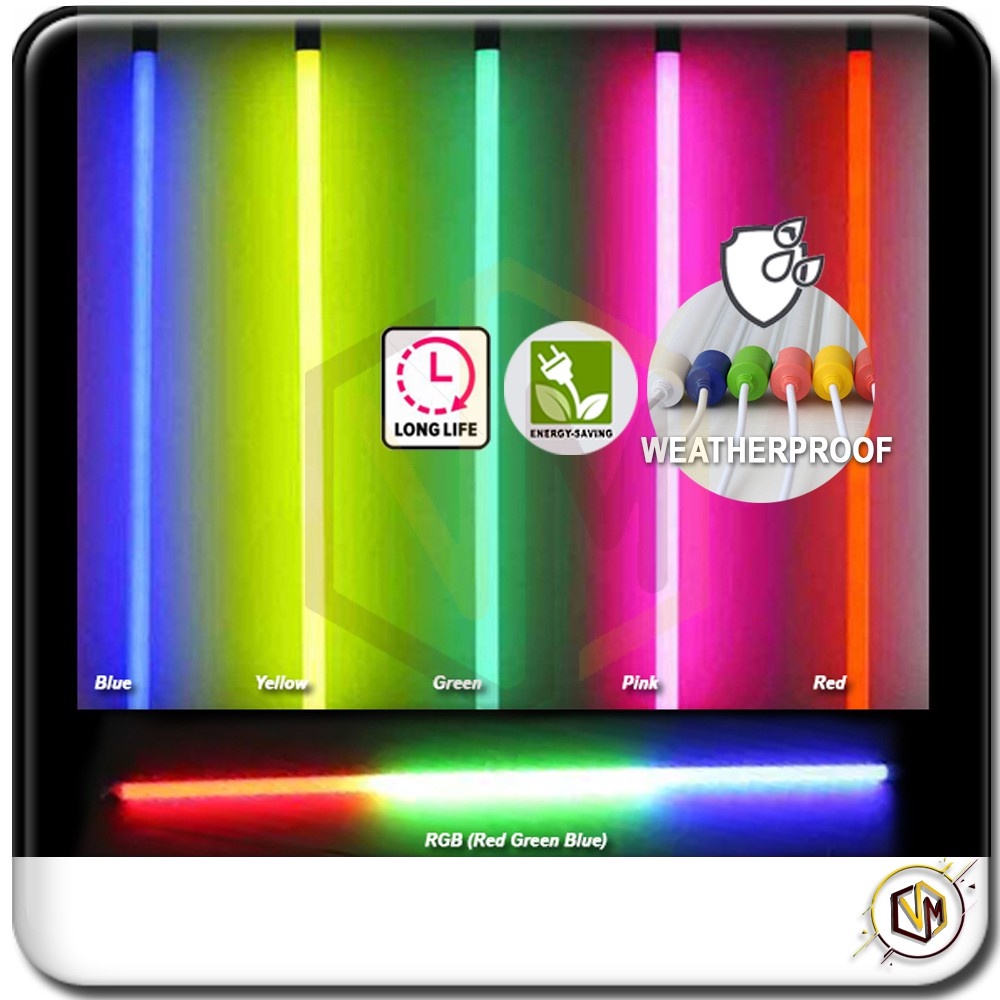 LED Colour Light Tube Weatherproof 4ft T8 18W MultiColor Red Yellow Blue Green RGB Lampu Kedai Makan