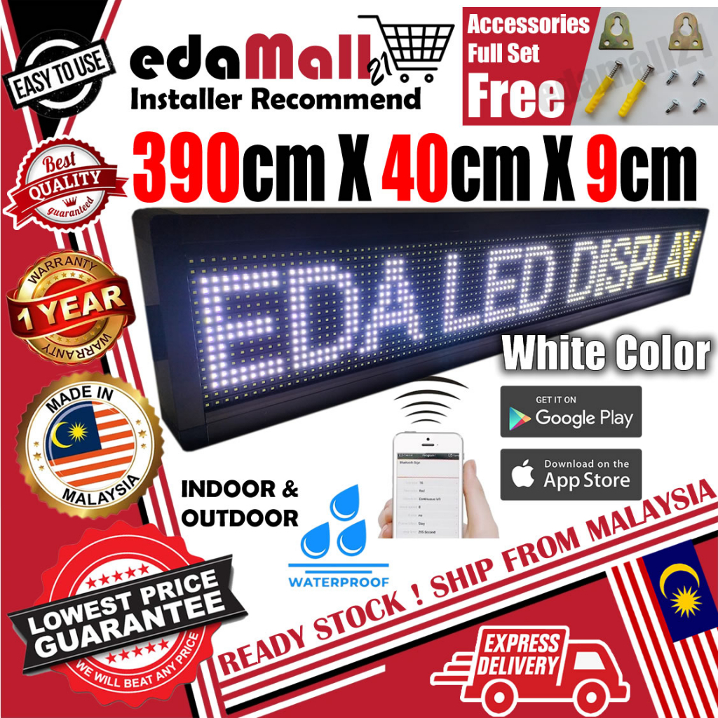 LED DISPLAY SIGN BOARD P10 Mobile App Wifi Outdoor Running Message Display SIGNBOARD Waterproof (White)