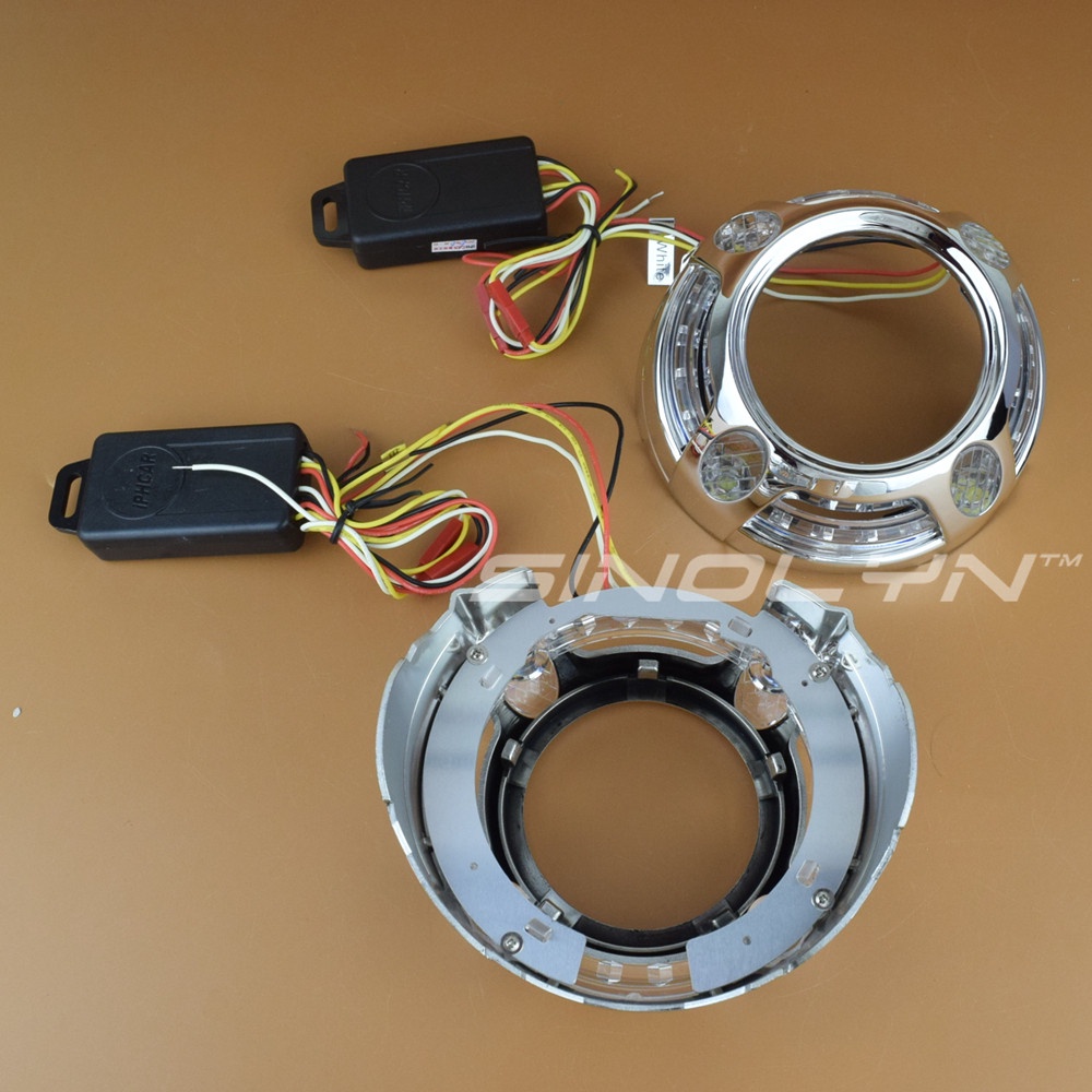 LED DRL Angel Eyes Halo Bezel Shrouds Masks Cover For Bixenon Projector Lens for Panamera Style Switchback Turn Signal